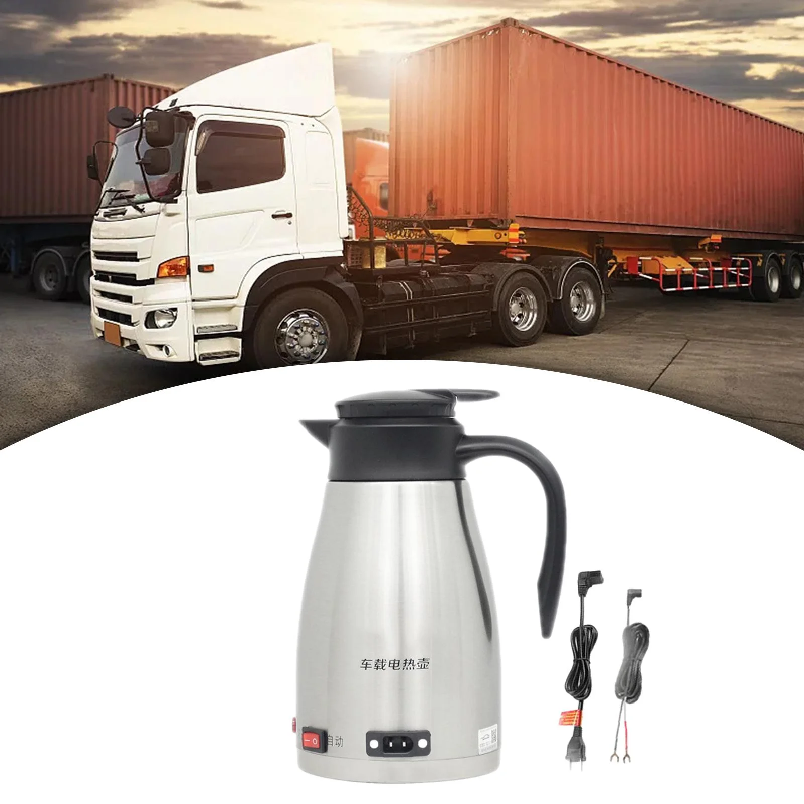 Aibecy 1000mL Car Electric Kettle 24V 250W Portable Lighter Kettle for Trip Travel White