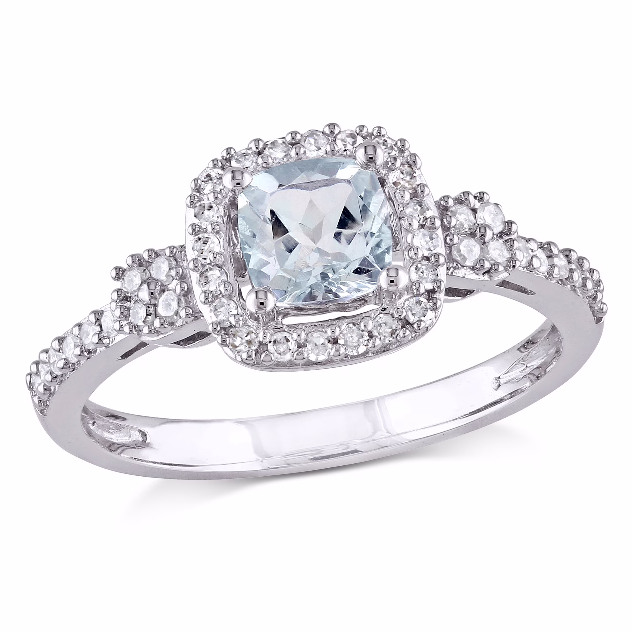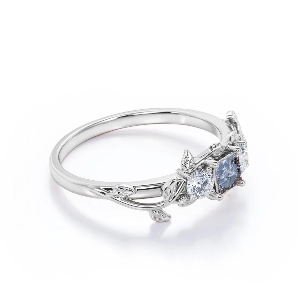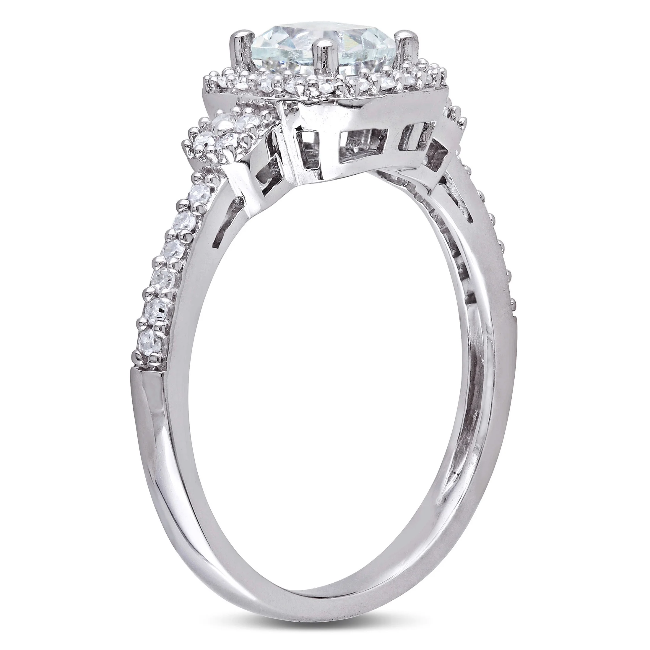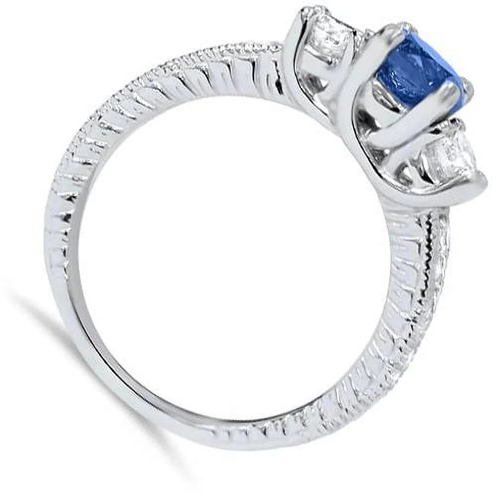 Pompeii3 1ct Vintage Blue Diamond 3-Stone Engagement Ring 14K White Gold