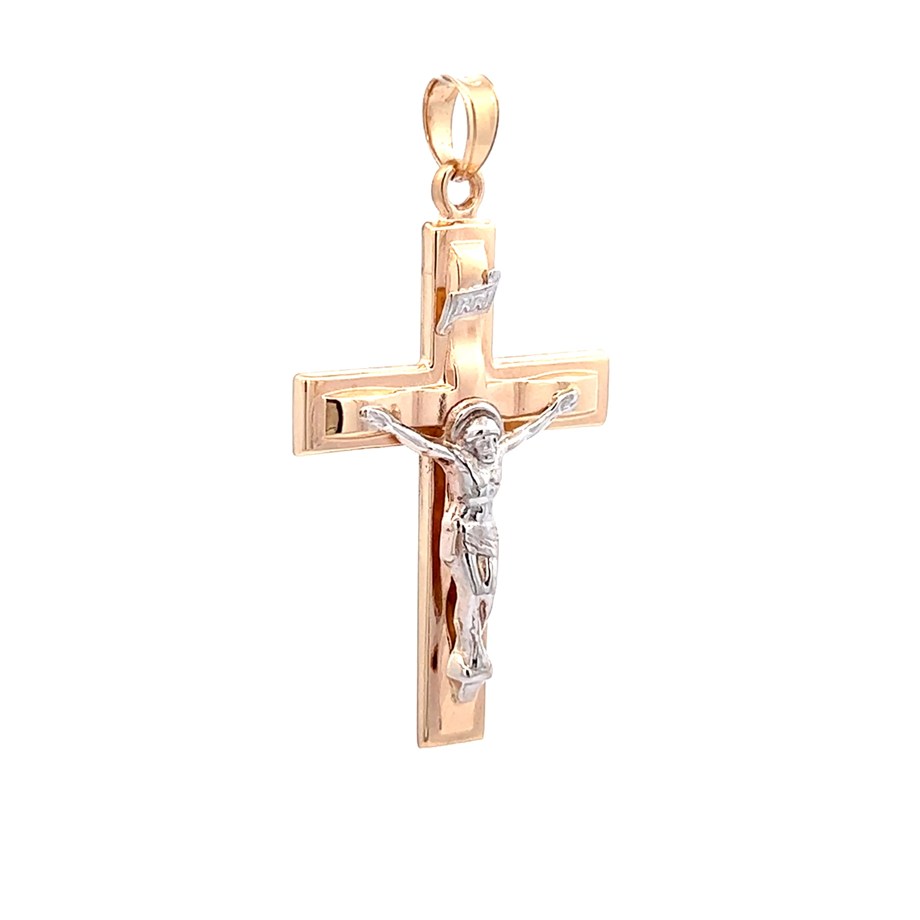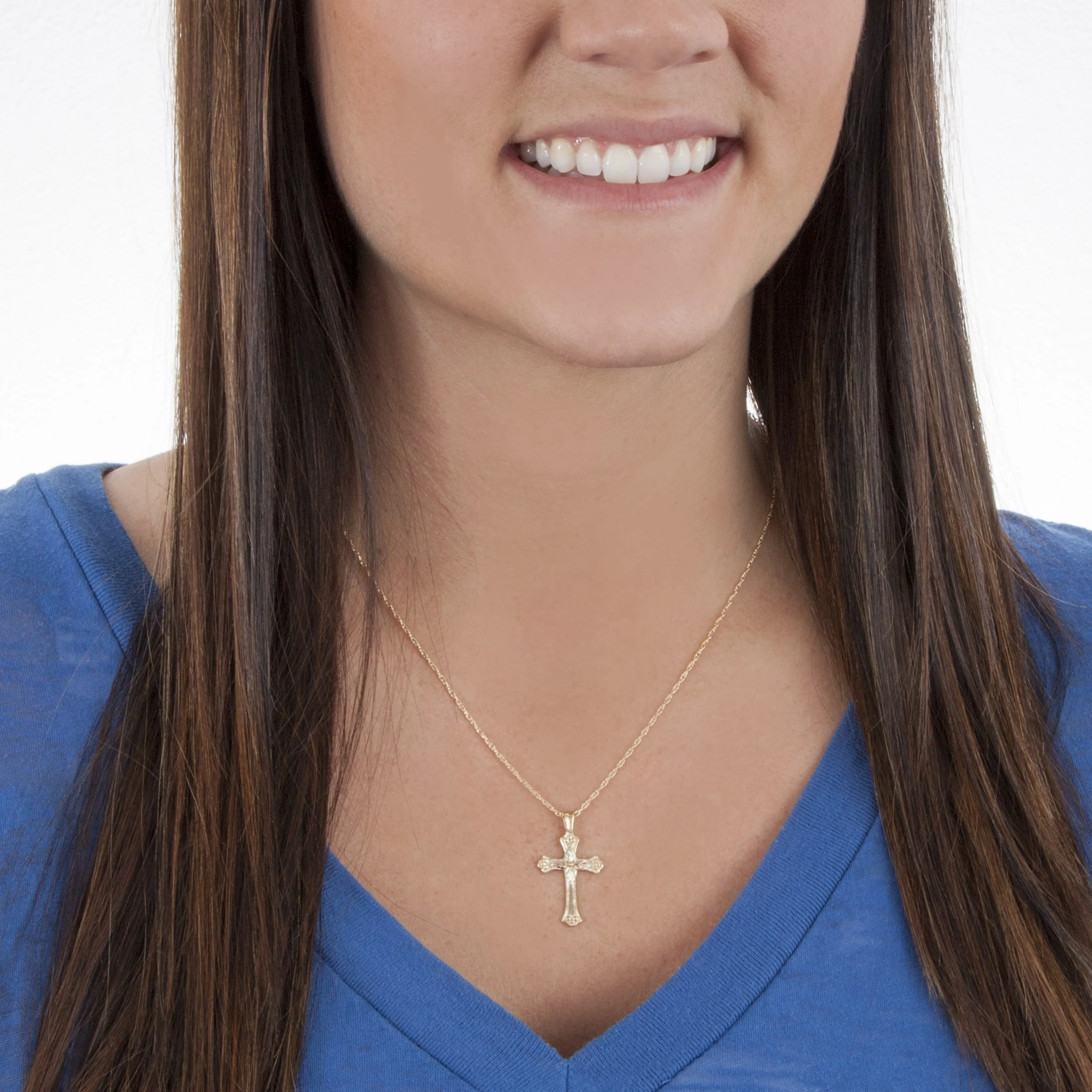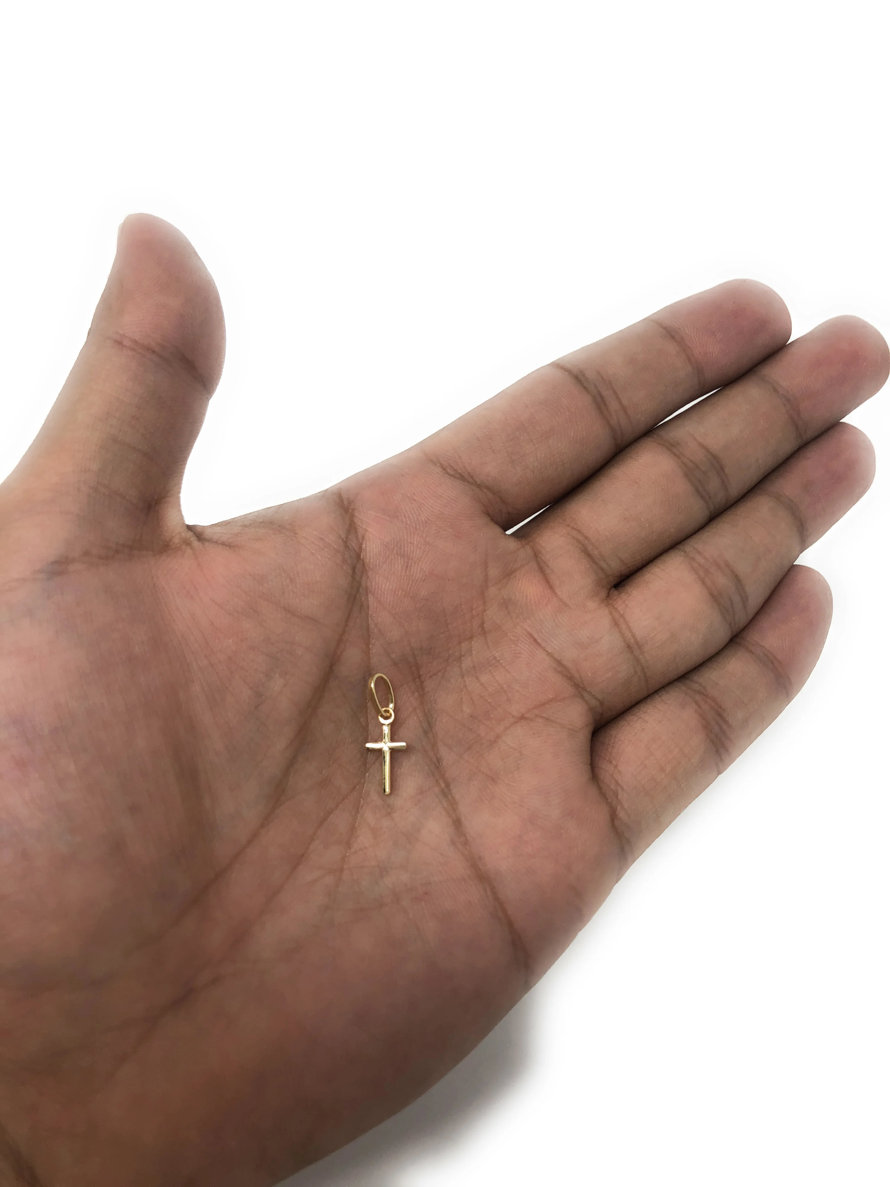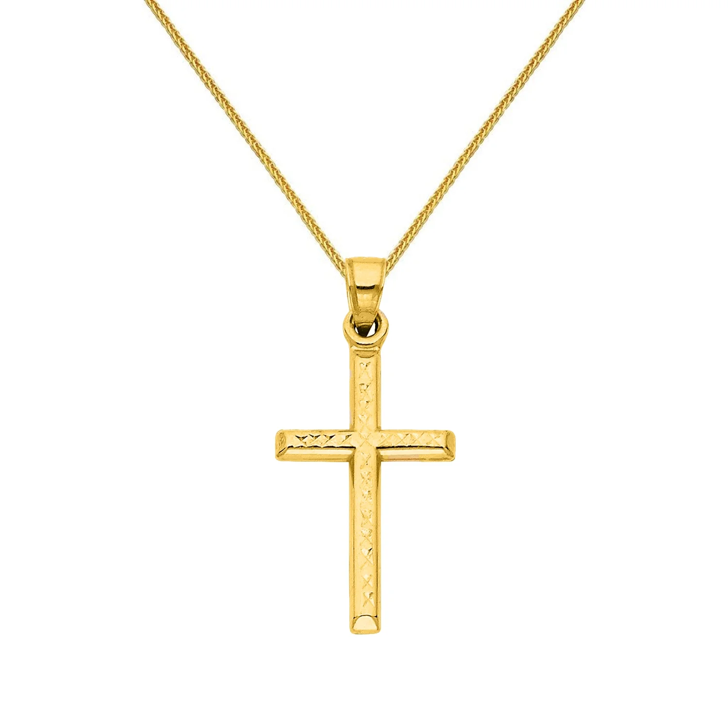 Ioka-14K Yellow Gold Plain Cross Religious Charm Pendant For Necklace or Chain