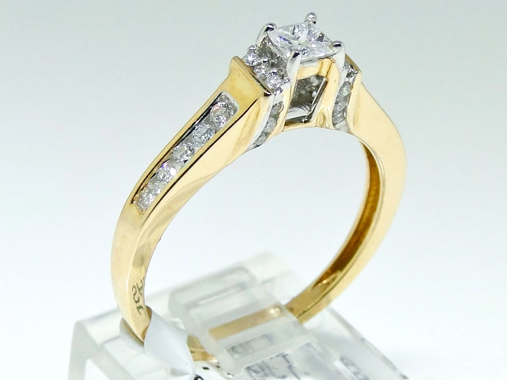 14k Yellow Gold Princess Cut Engagement Solitaire Band Diamond Ring 0.38Ct