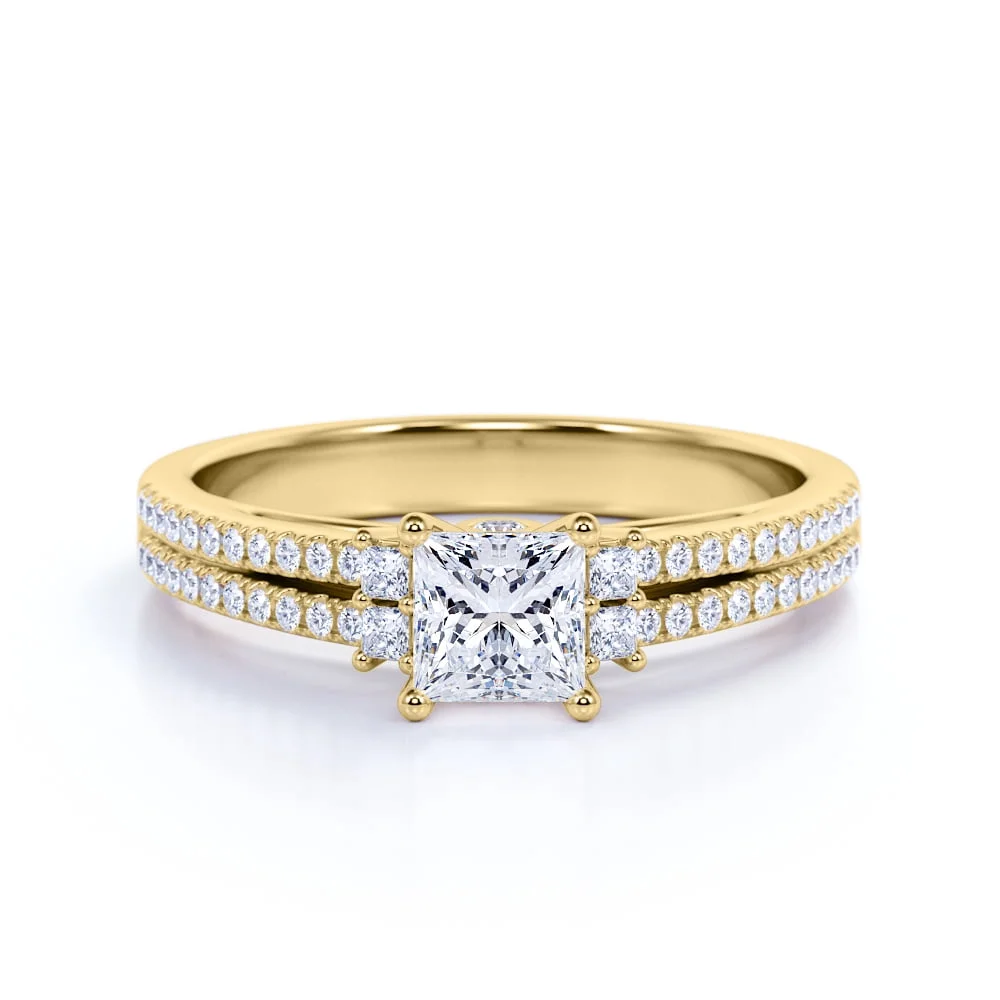 1.50Ct Princess Cut Lab Grown Diamond 14K Yellow Gold Band Ring for Women Gifts/Engagement