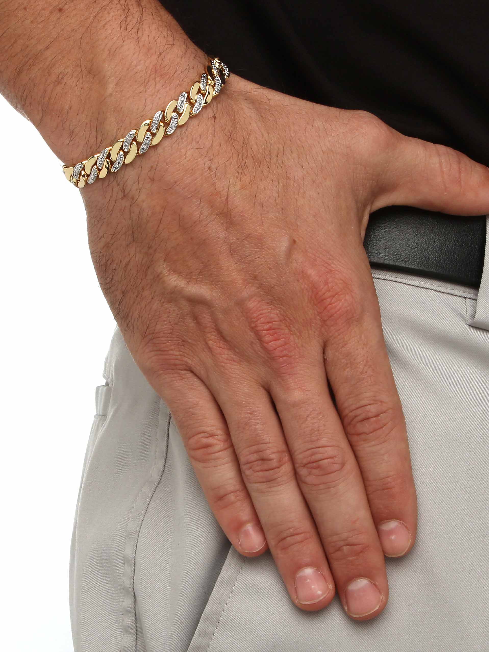 PalmBeach Jewelry Men's Diamond Accent Curb-Link Bracelet Yellow Gold-Plated 9.5" (9mm)