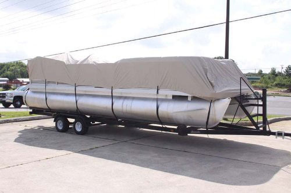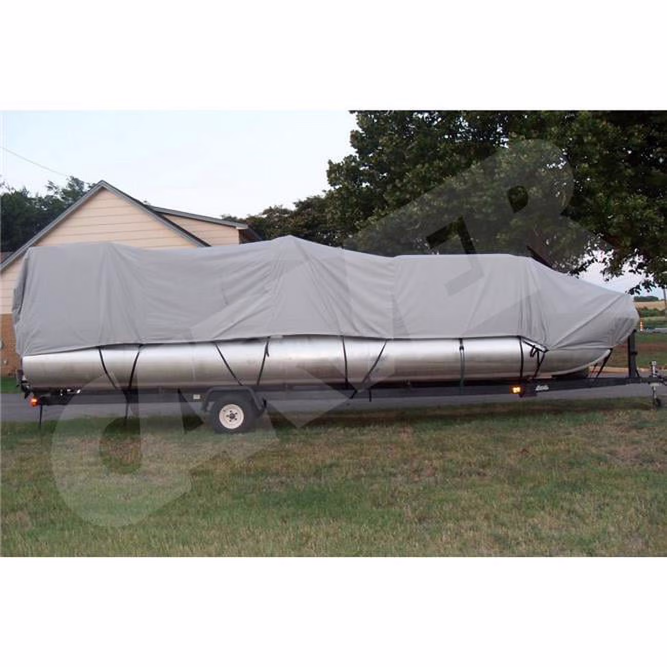 Carver 20 ft. Pontoons Boat Cover with Partially Enclosed Decks, Fold Down Bimini Tops & Rails - Mist Gray