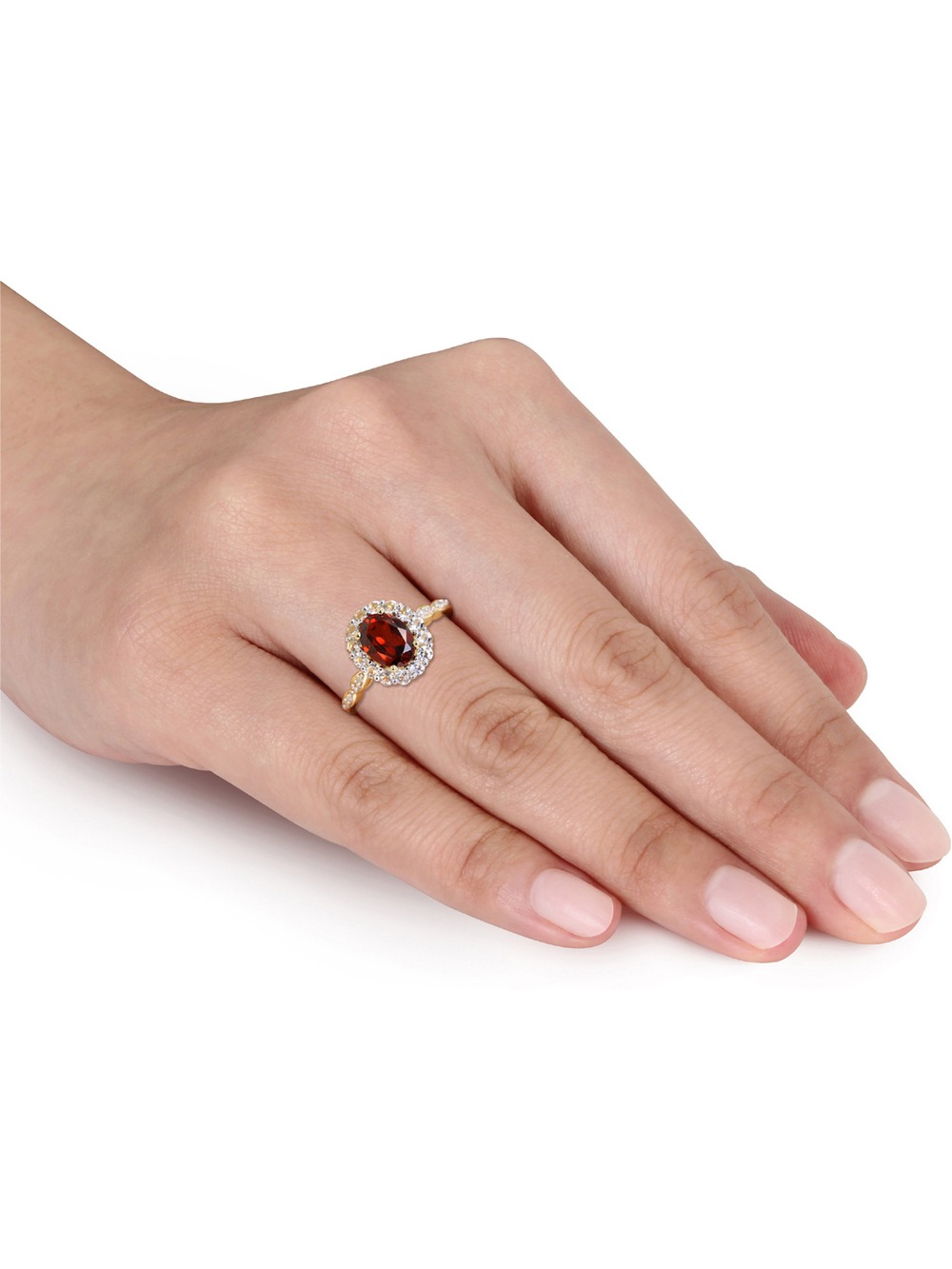 Garnet and White Topaz Fashion Ring 2 Carat (Ctw) with Diamonds in 14K Yellow Gold