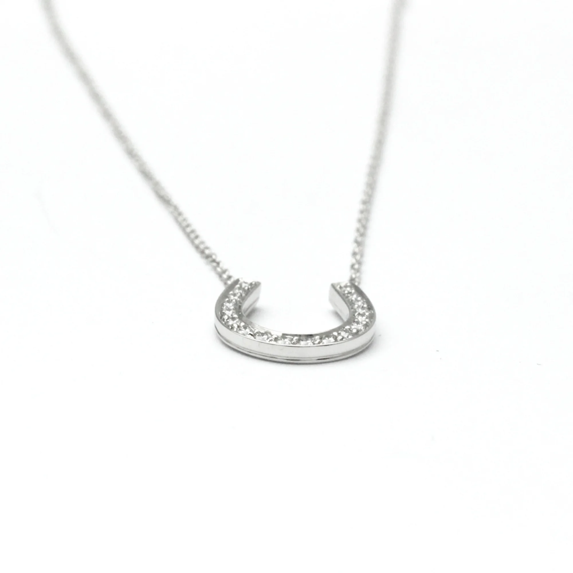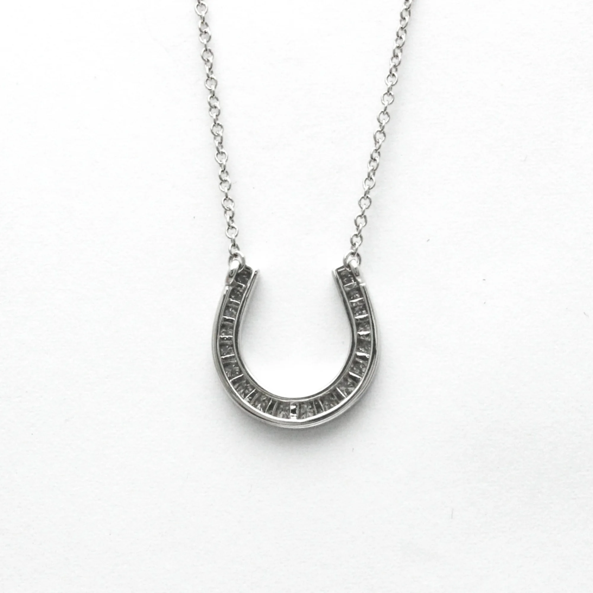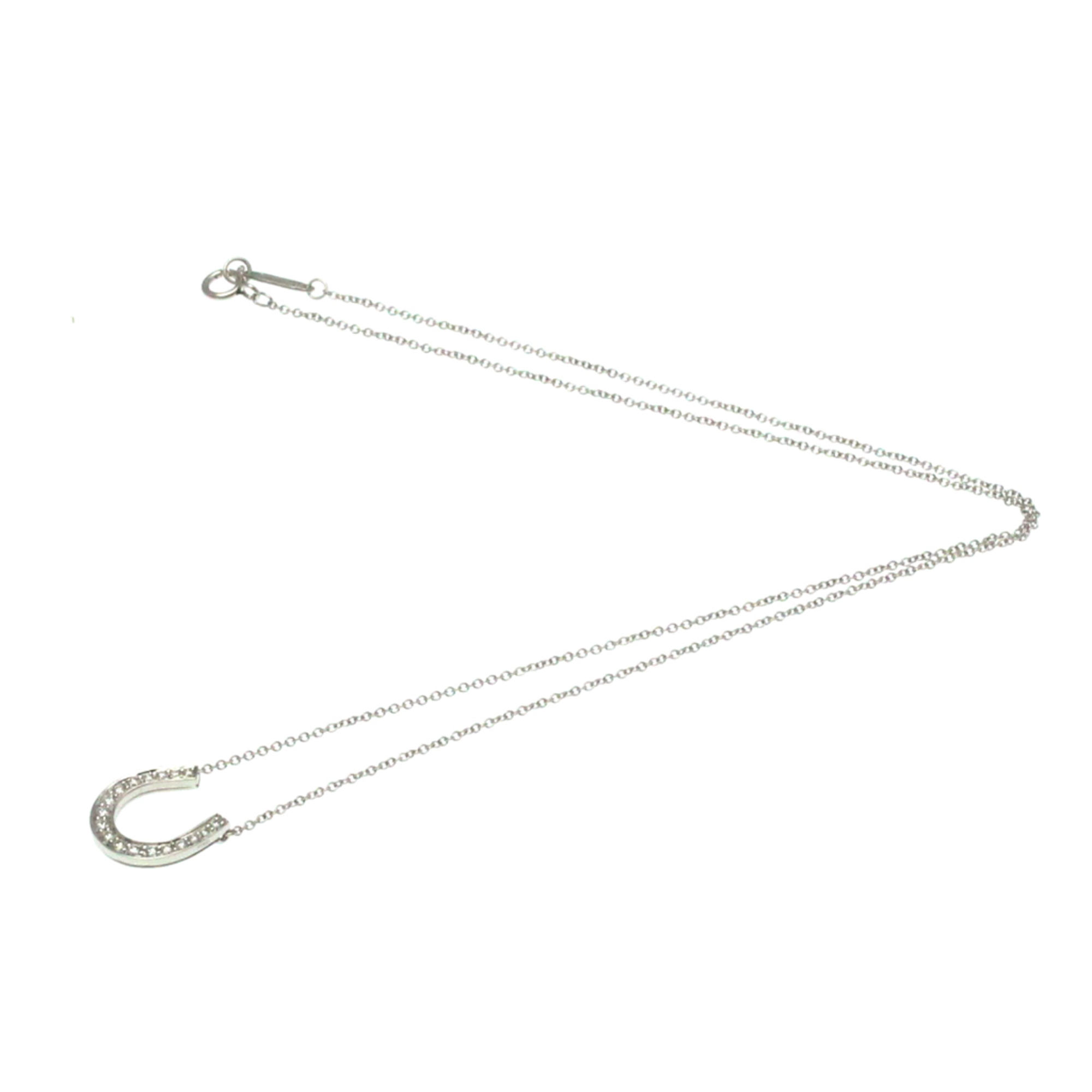 Pre-Owned Tiffany Horseshoe Necklace Platinum Diamond Men,Women Fashion Pendant Necklace (Silver) (Good)