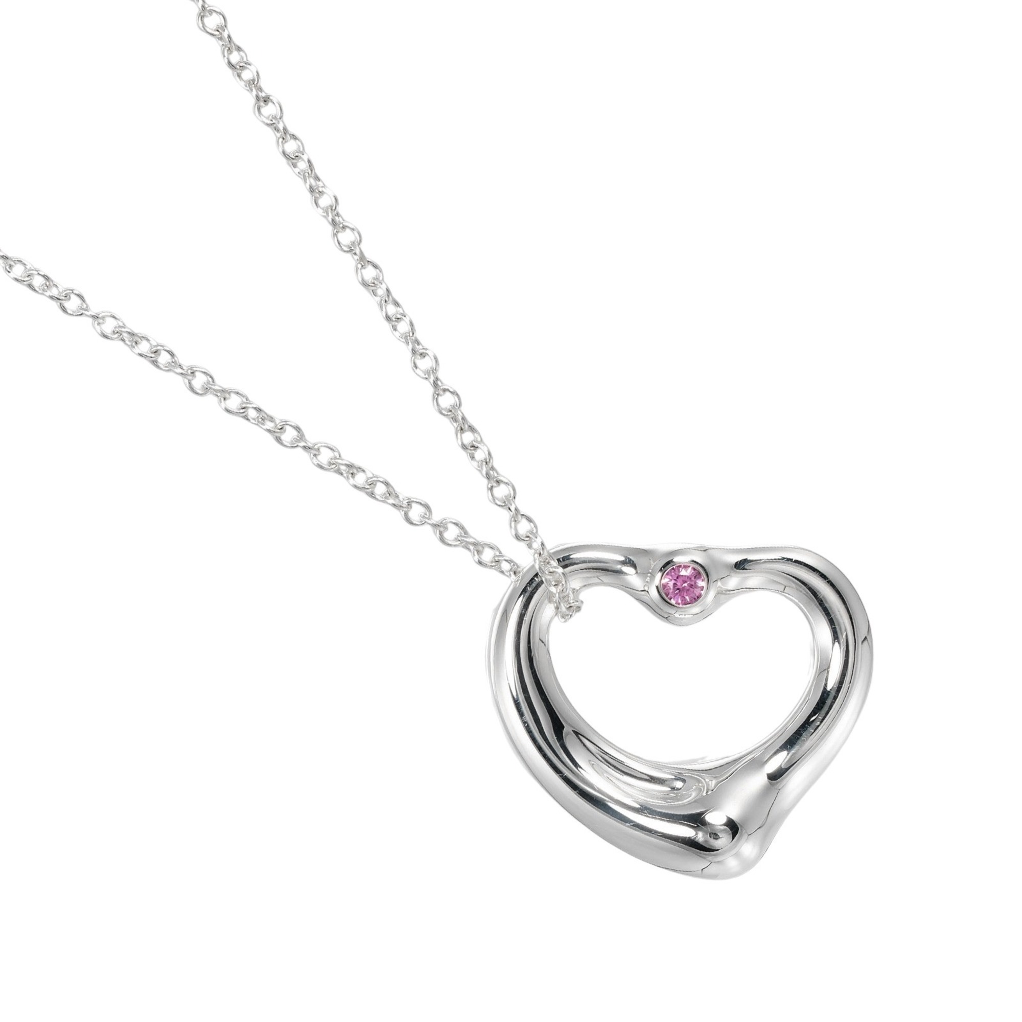 Pre-Owned Tiffany TIFFANY&Co. Open Heart Necklace 925 Silver Pink Sapphire Approx. 3.33g I112223015 (Good)