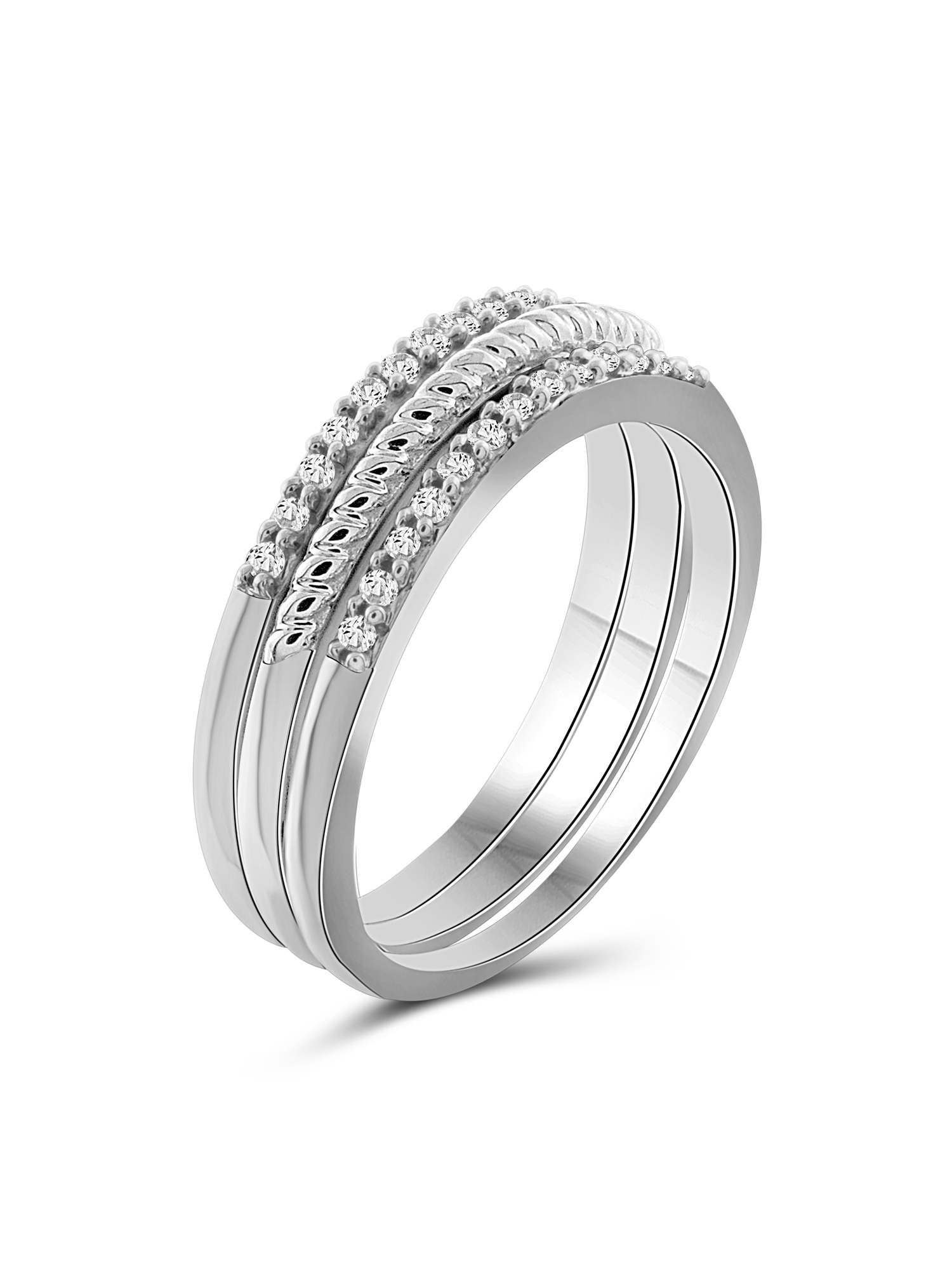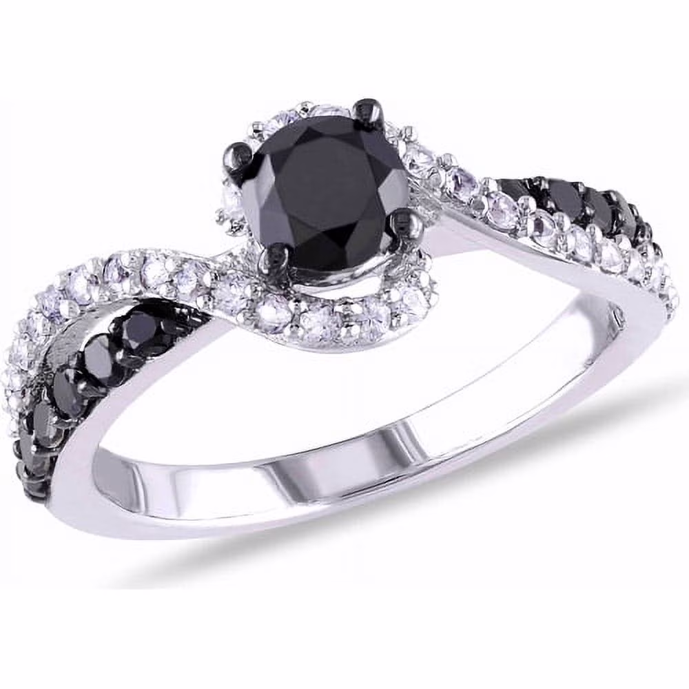 3/4 Carat T.W. Black Diamond and 1/3 Carat T.G.W. Created White Sapphire Sterling Silver Ring