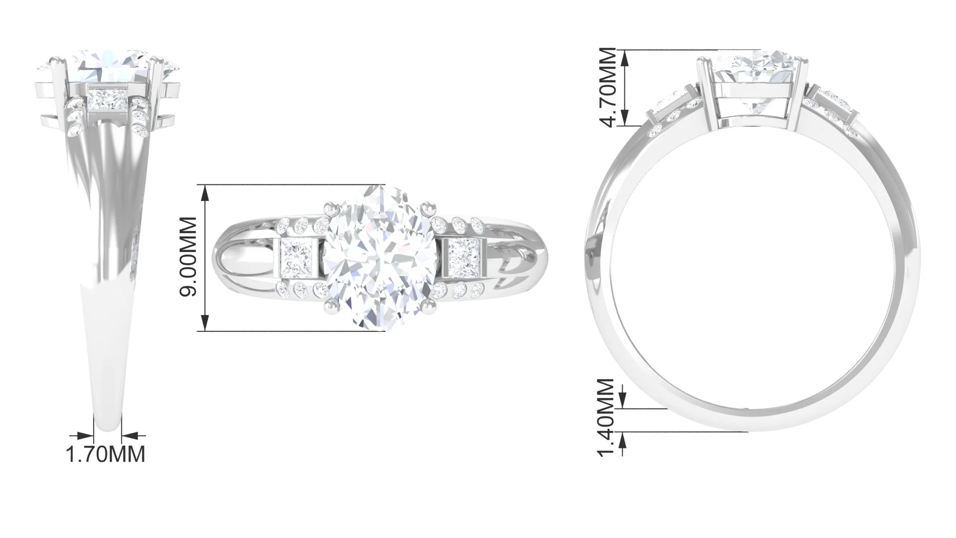 Cubic Zirconia Solitaire Engagement Ring for Women - 8X10 mm Oval Shape Zircon, 925 Sterling Silver, US 4.00