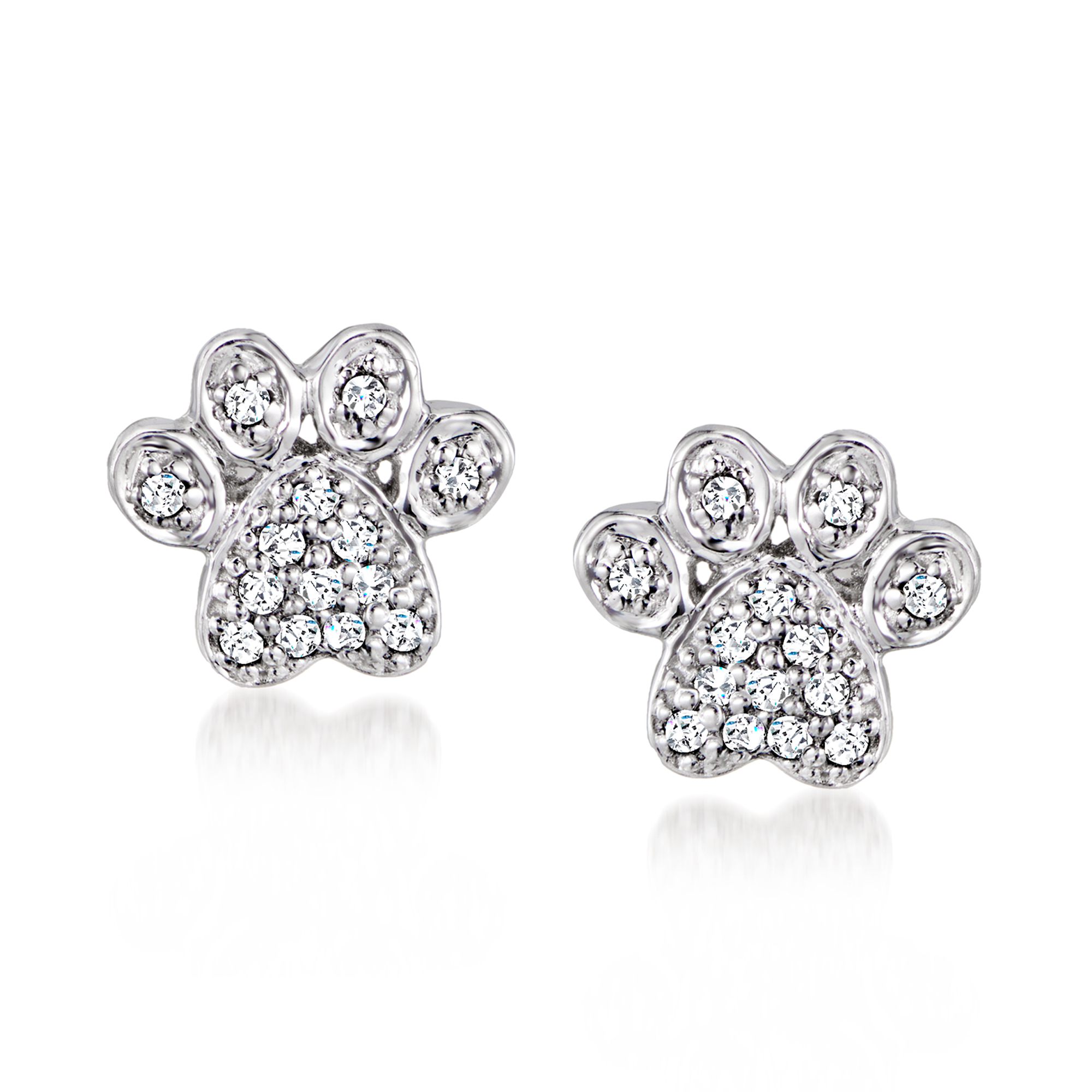 Ross-Simons Diamond-Accented Paw Print Earrings in Sterling Silver, Women's, Adult