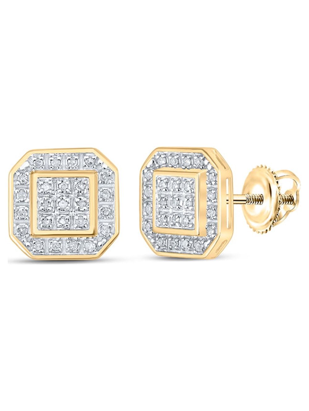 Macey Worldwide Jewelry 10k Yellow Gold Diamond Octagon Earrings 1/6 Ctw