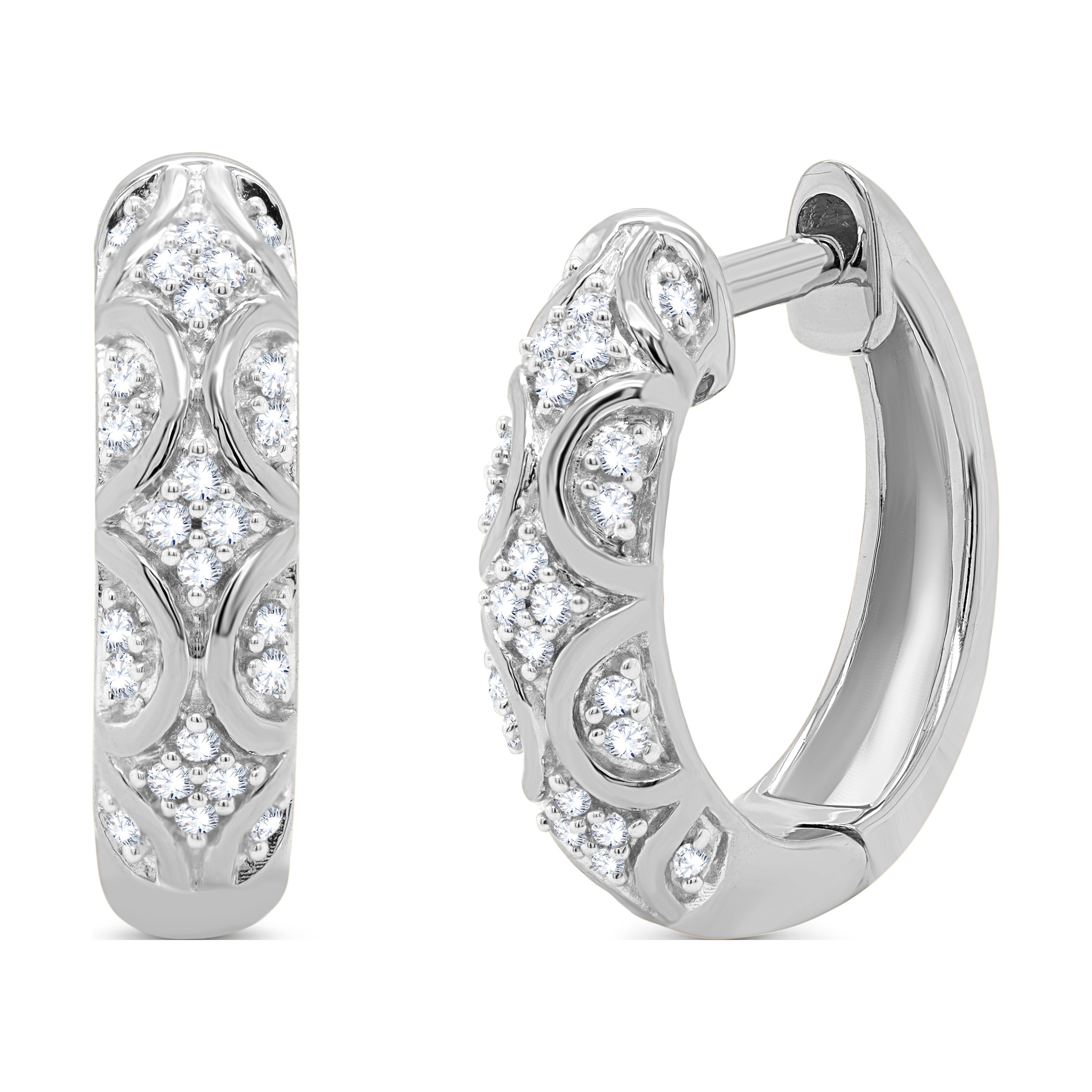 Round Cut Natural Diamond in 18K White Gold Plated Hoop Earrings ( 0.15 Carat, I-J Color, I2-I3 Clarity)