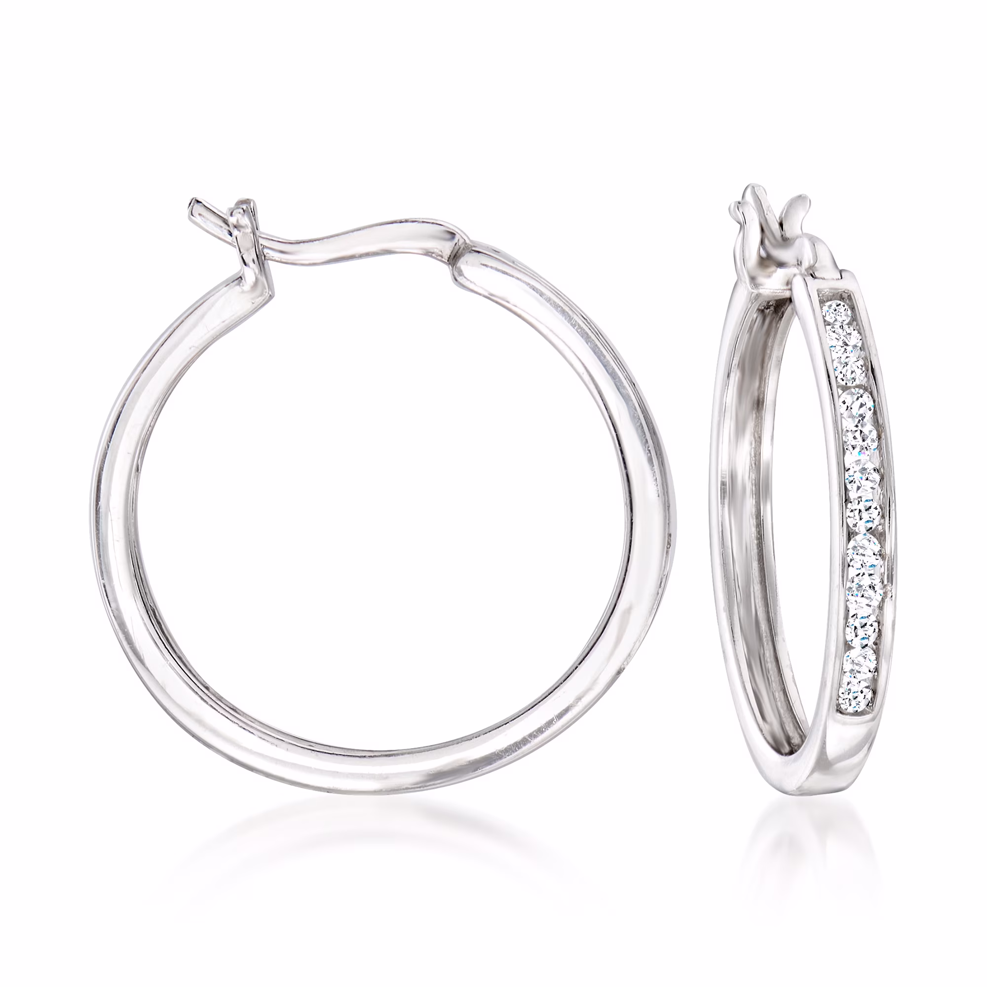 Ross-Simons 0.25 ct. t.w. Diamond Hoop Earrings in Sterling Silver, Women's, Adult