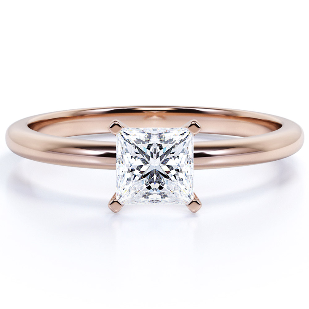 JeenMata Solitaire 1.5 Carat Princess Cut Moissanite Engagement Ring in 10k Rose Gold