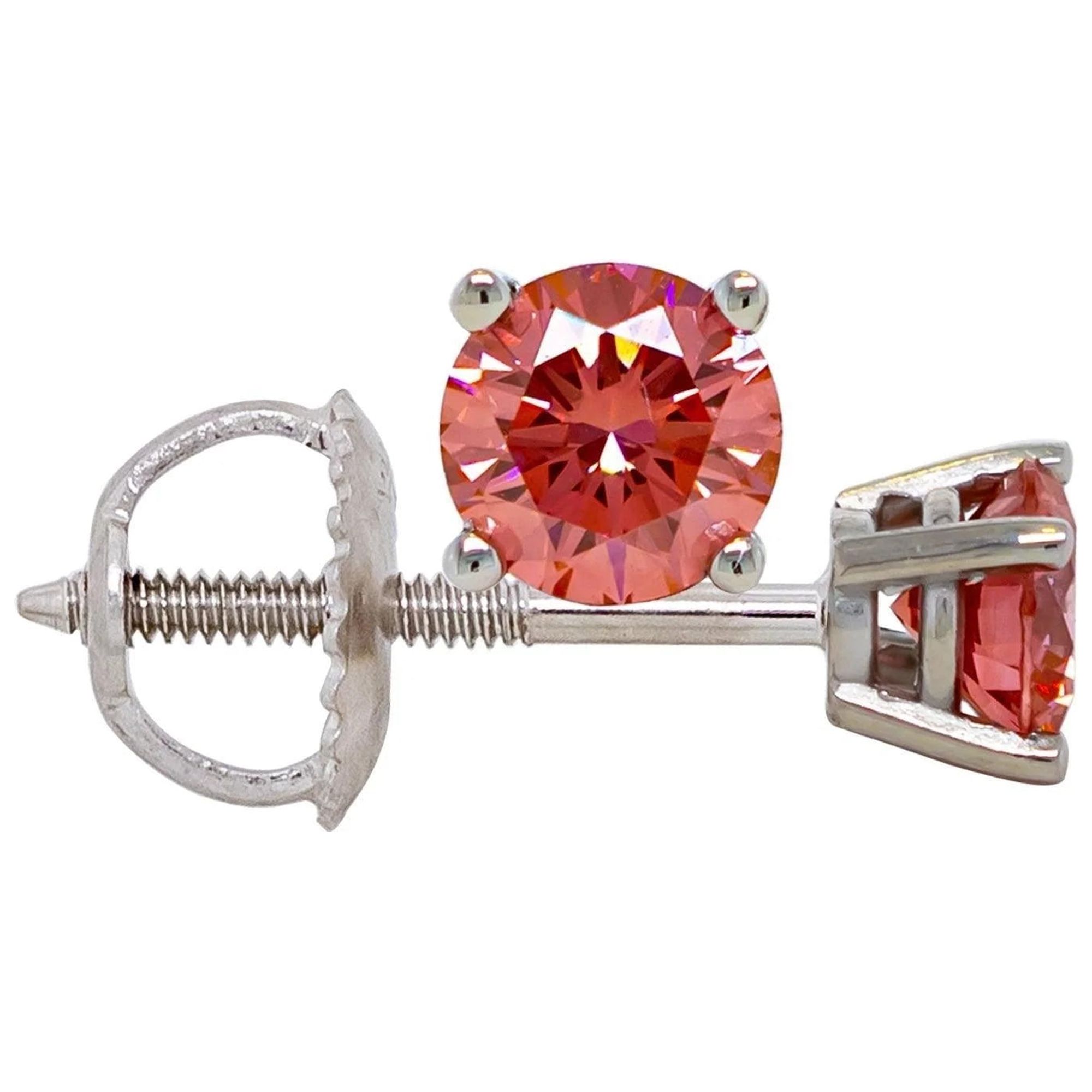 New World Diamonds 0.75 Cttw Lab Grown Pink Diamond IGI Certified Stud Earrings 14k White Gold