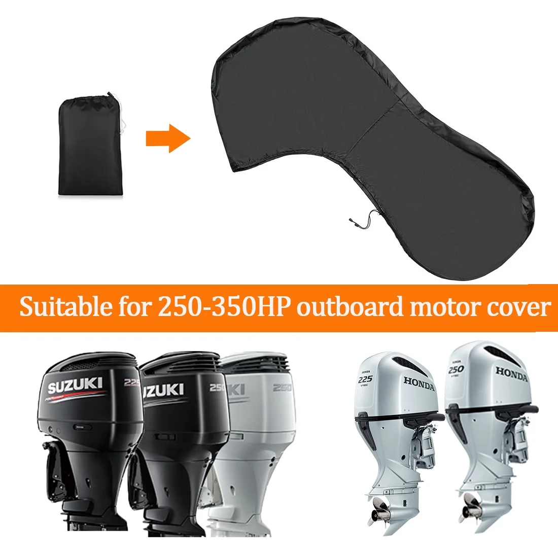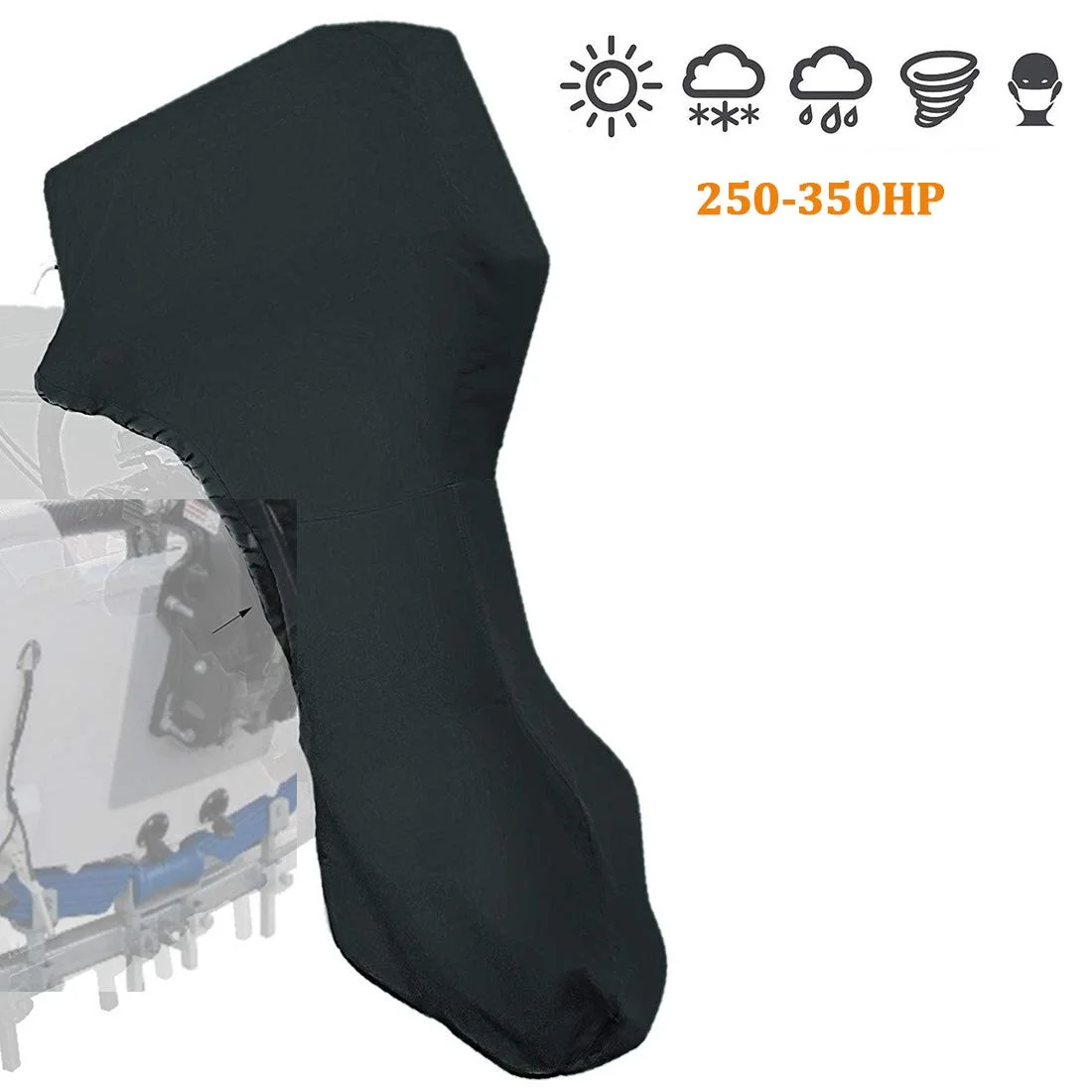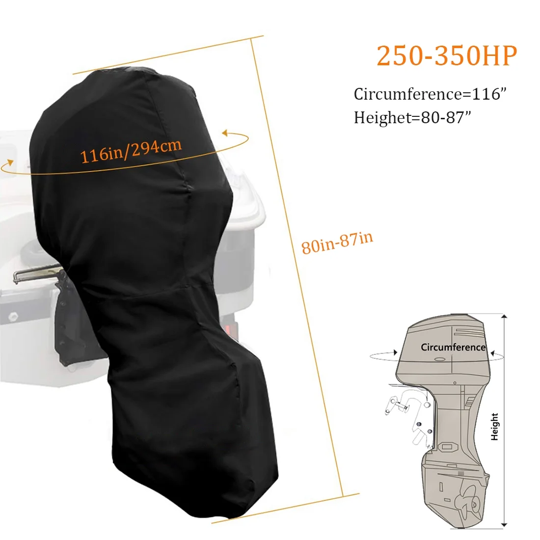 Coverify Full Outboard Motor Cover for 250-350 HP Boat Engine Cover Waterproof 600D Oxford Black