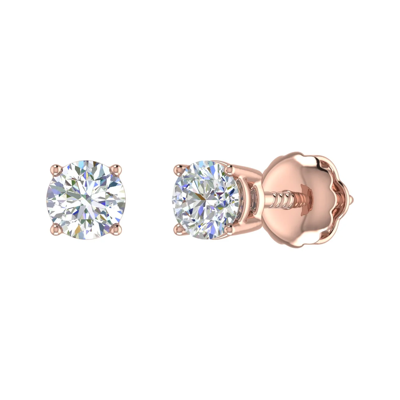 1/2 Carat Natural Round Diamond Stud Earrings in 14K Gold (Screw Back)