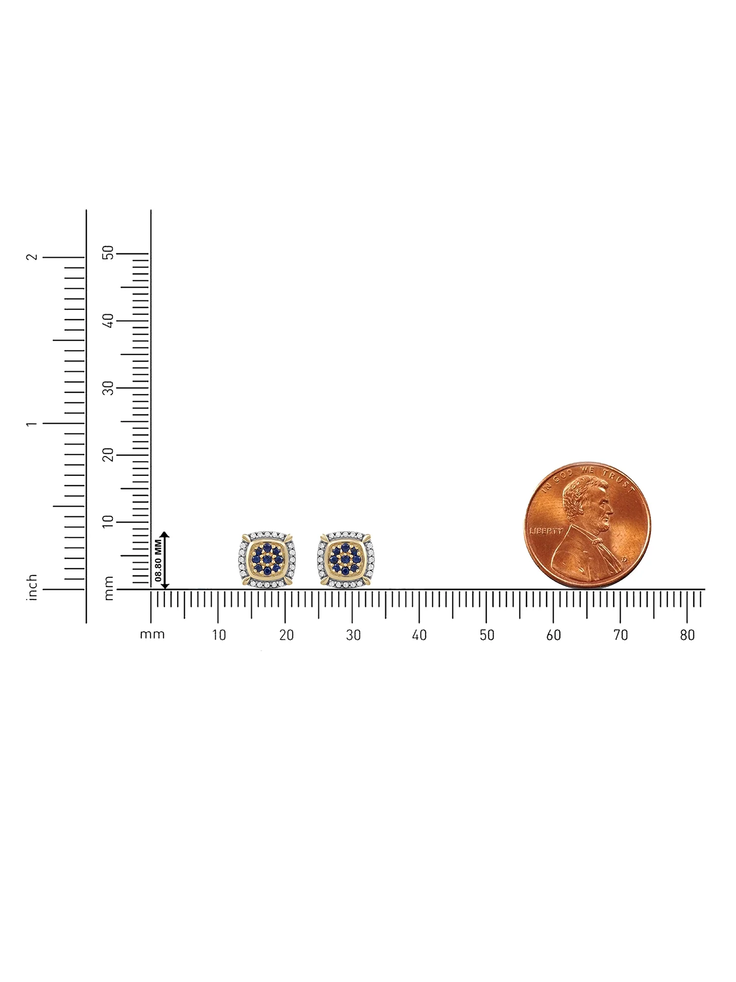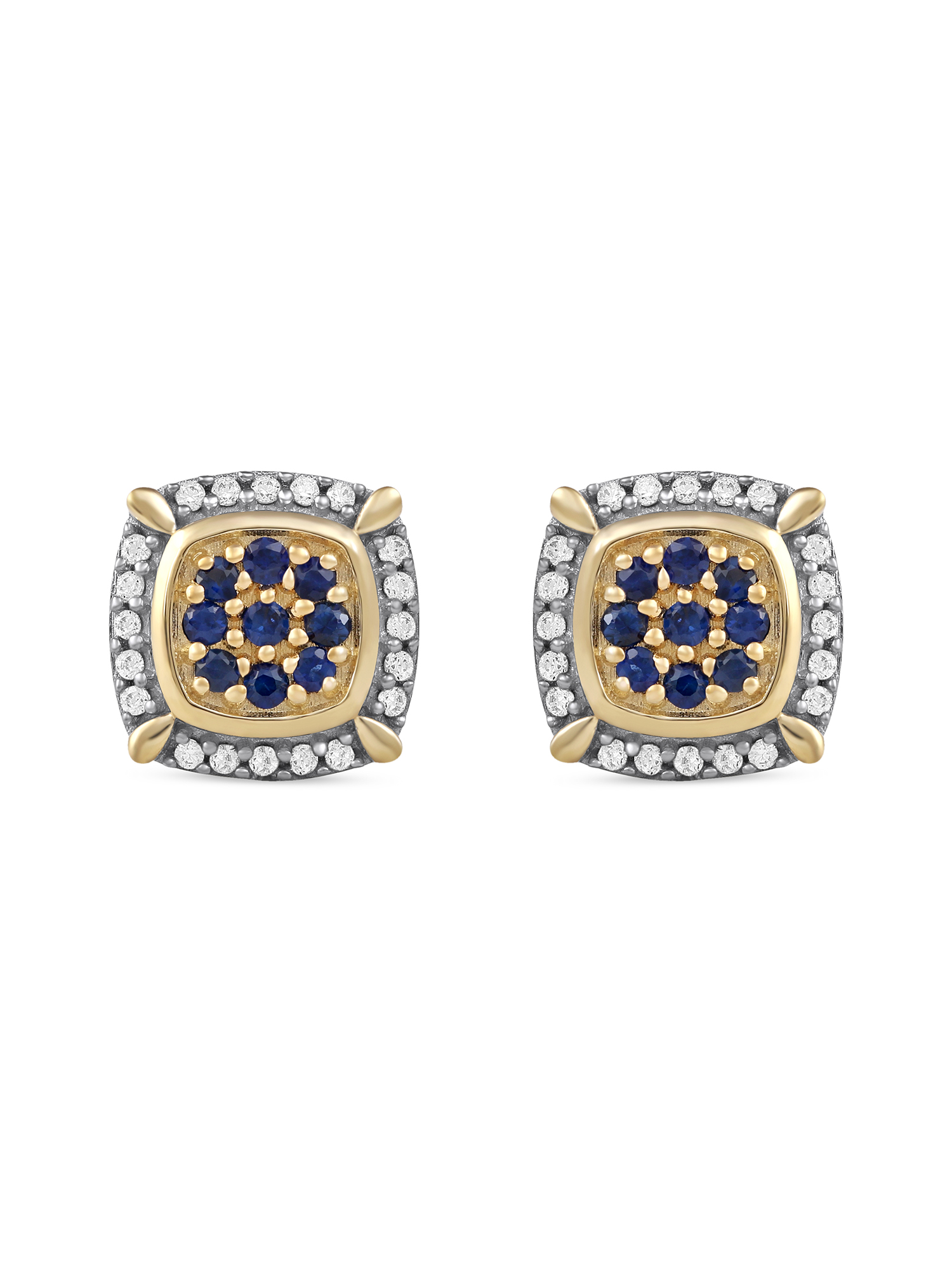 Imperial Gemstone 10k Yellow Gold Blue Sapphire and 1/8CT TW Diamond Cluster Halo Stud Earrings for Men