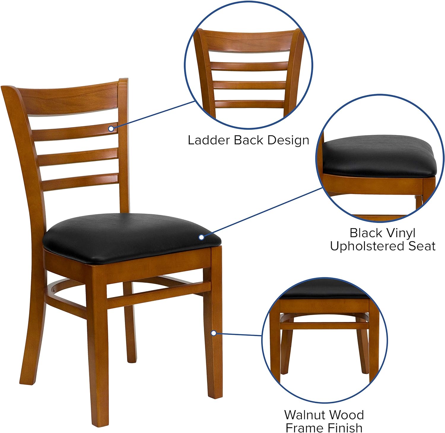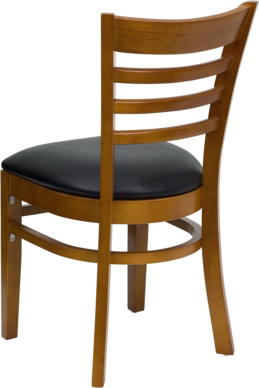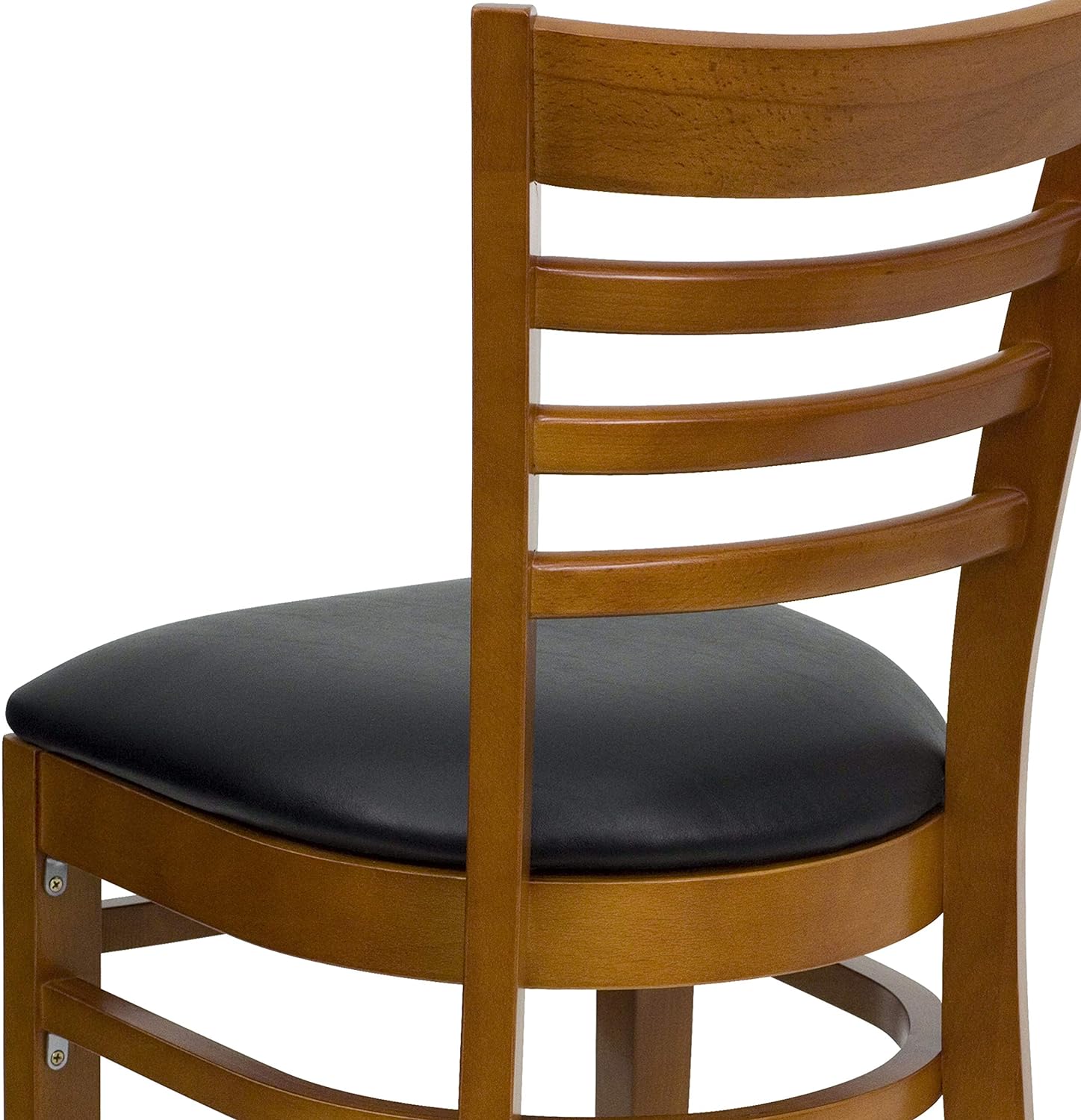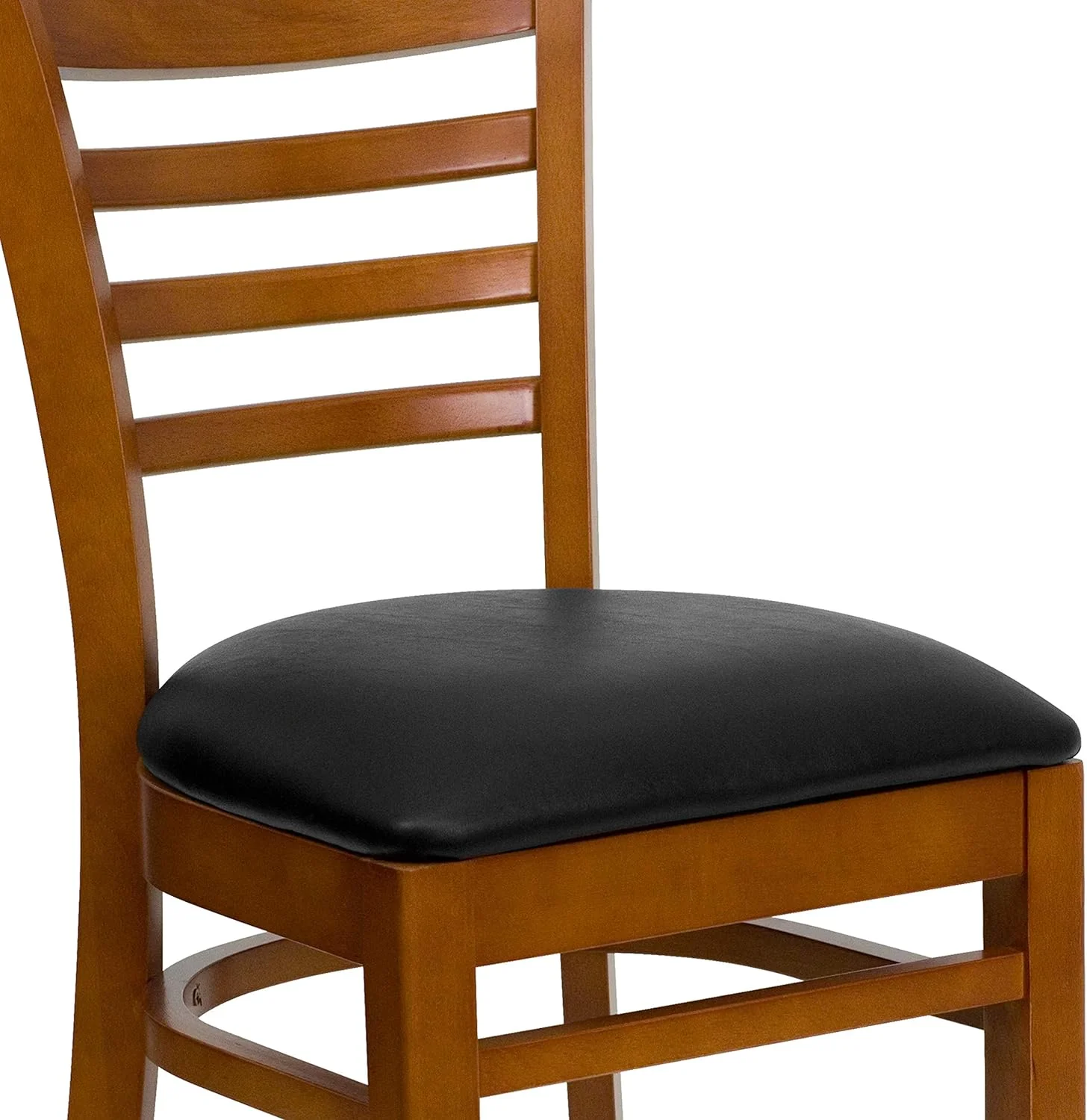 BizChair Black Three-Slat Ladder Back Metal Restaurant Chair - Cherry Wood Seat