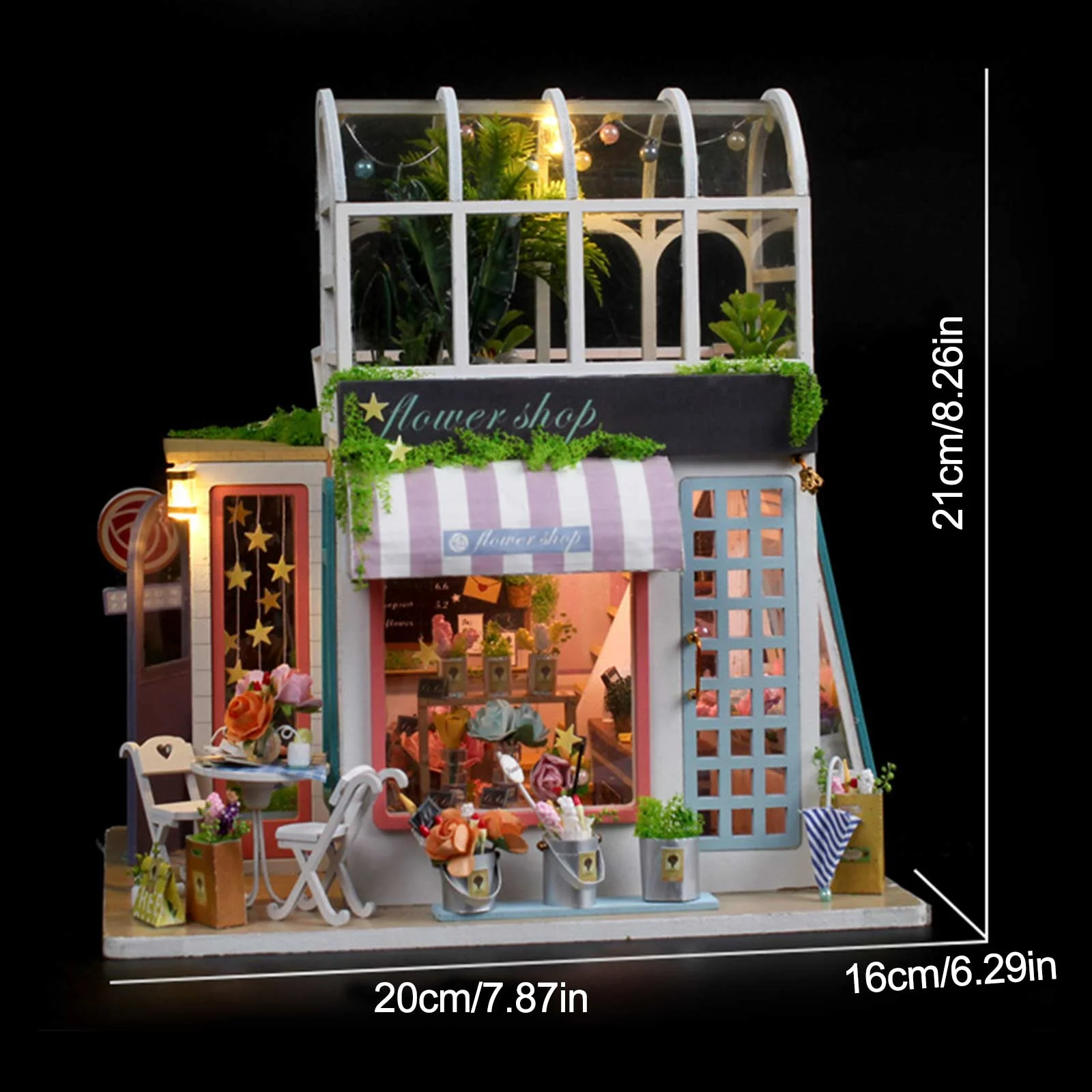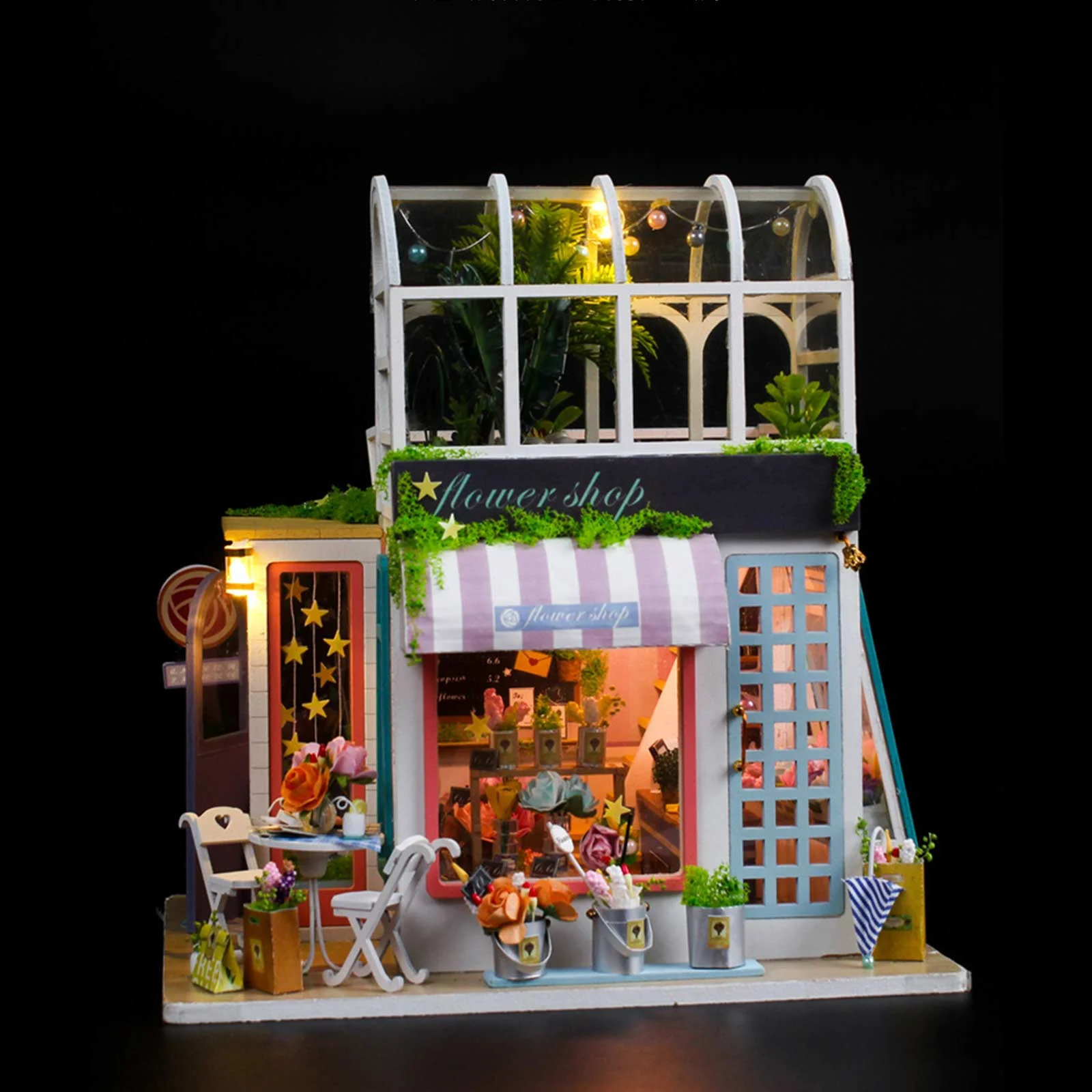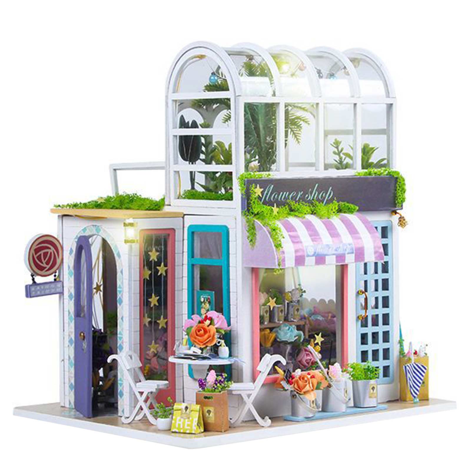 Dollhouse Miniature with Flower Shop, DIY Wooden Crafts Doll House Mini Handmade Christmas Kit, Creative Room Idea Gift for Adult Friend Lover