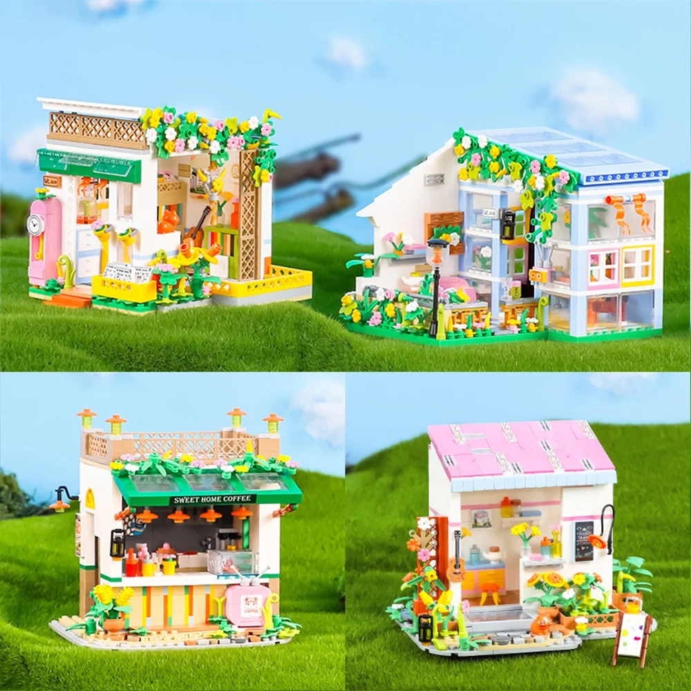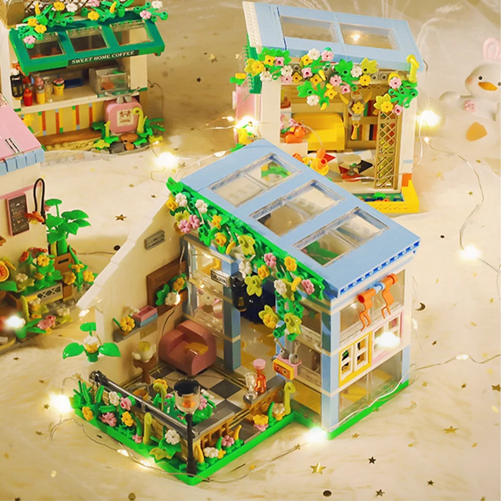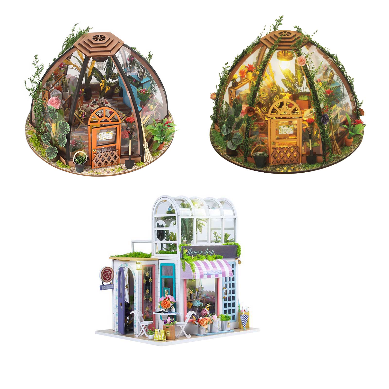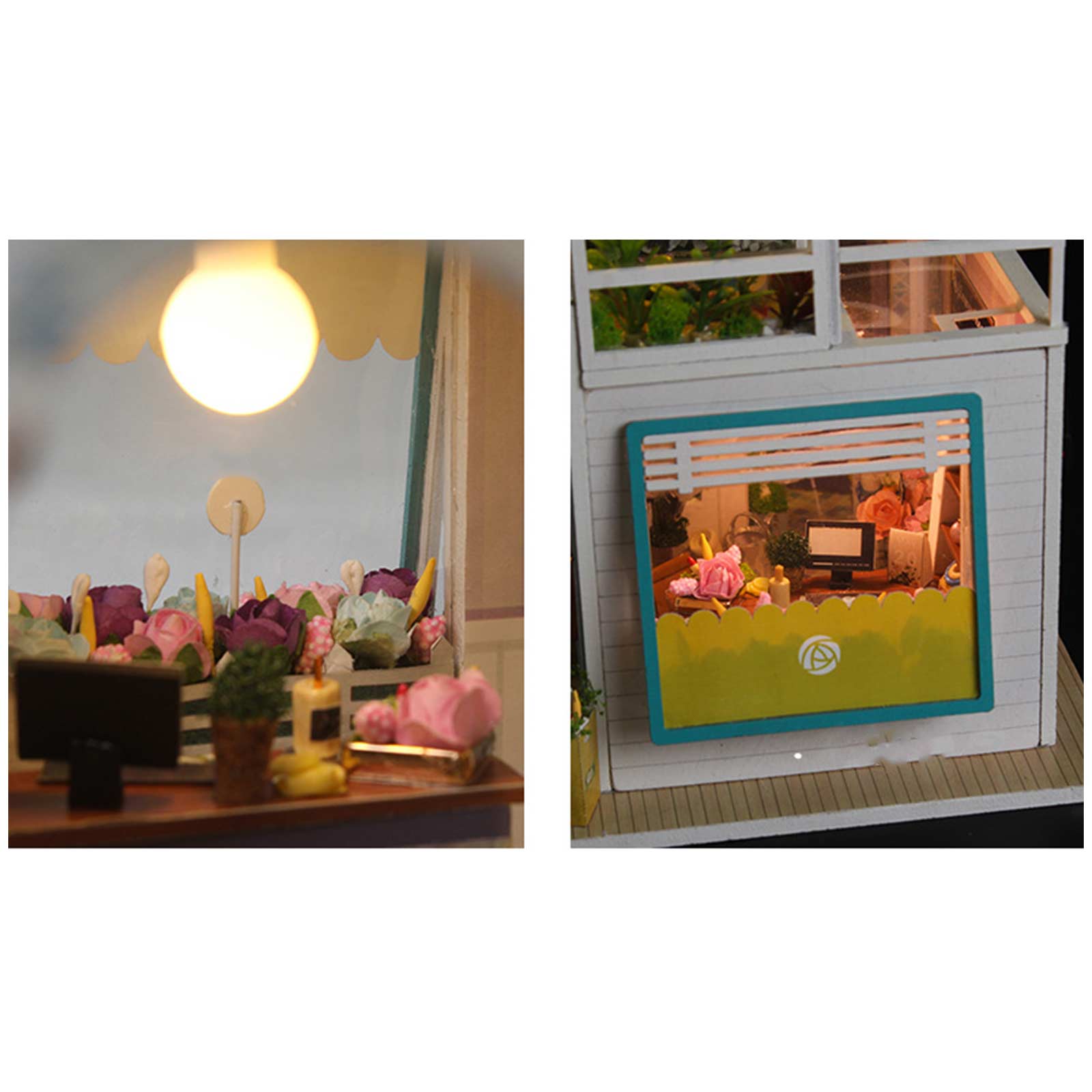 Dollhouse Miniature with Flower Shop, DIY Wooden Crafts Doll House Mini Handmade Christmas Kit, Creative Room Idea Gift for Adult Friend Lover