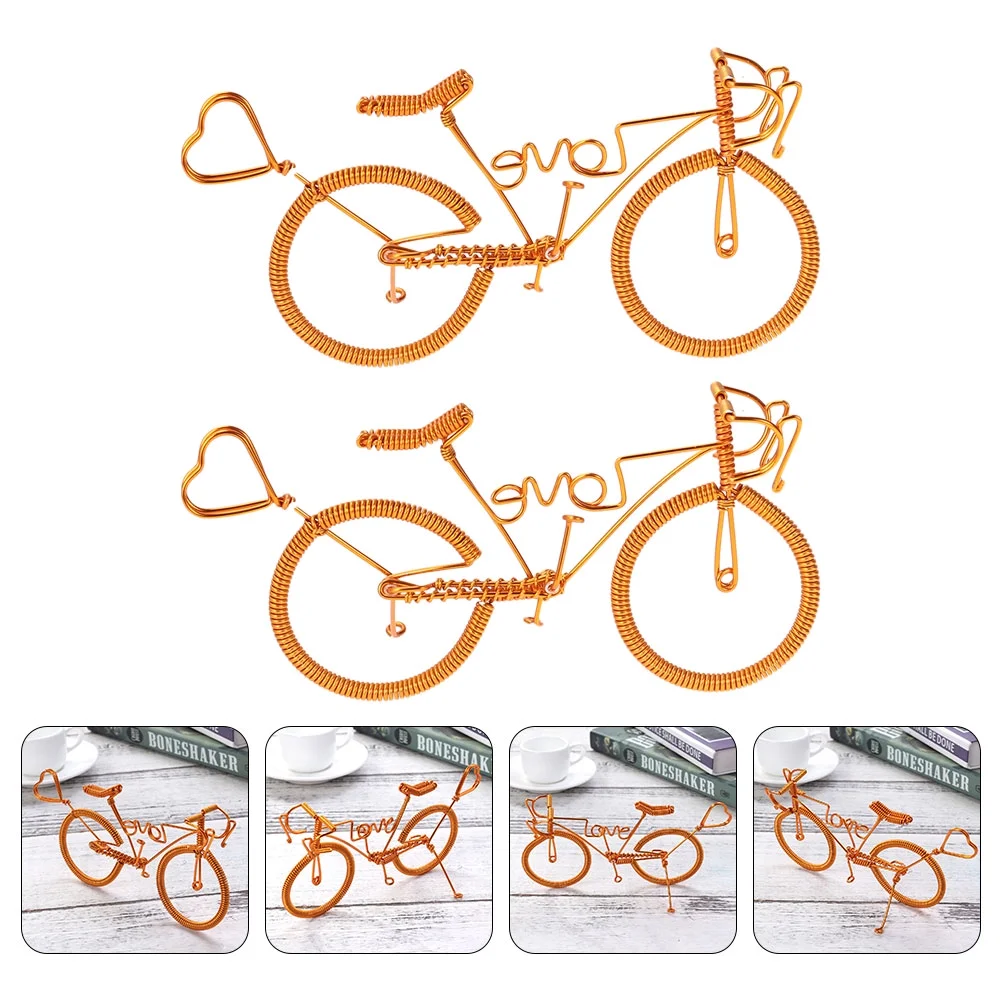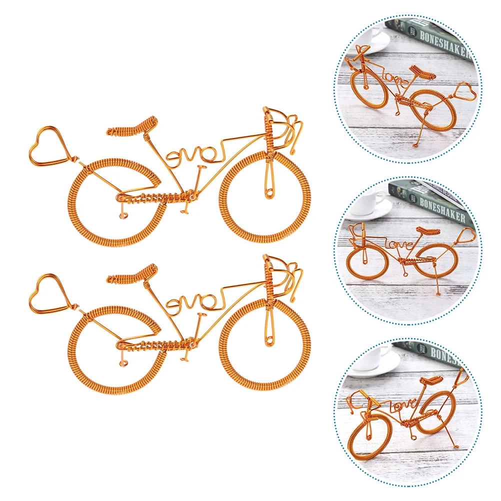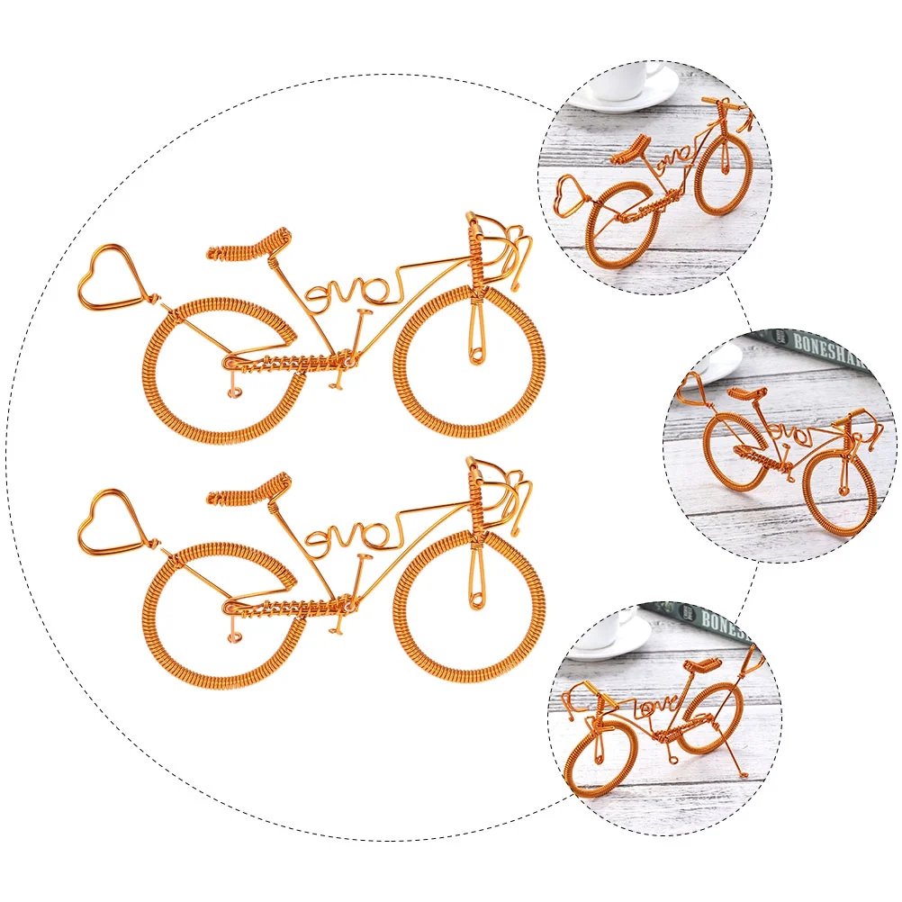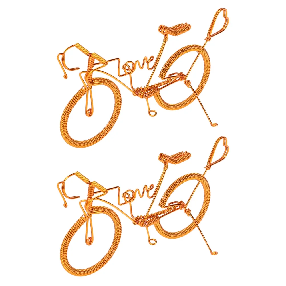 OUNONA 2pcs Handmade Bike Creative Model Metal Crafts Figurine Miniatures Home Ornaments