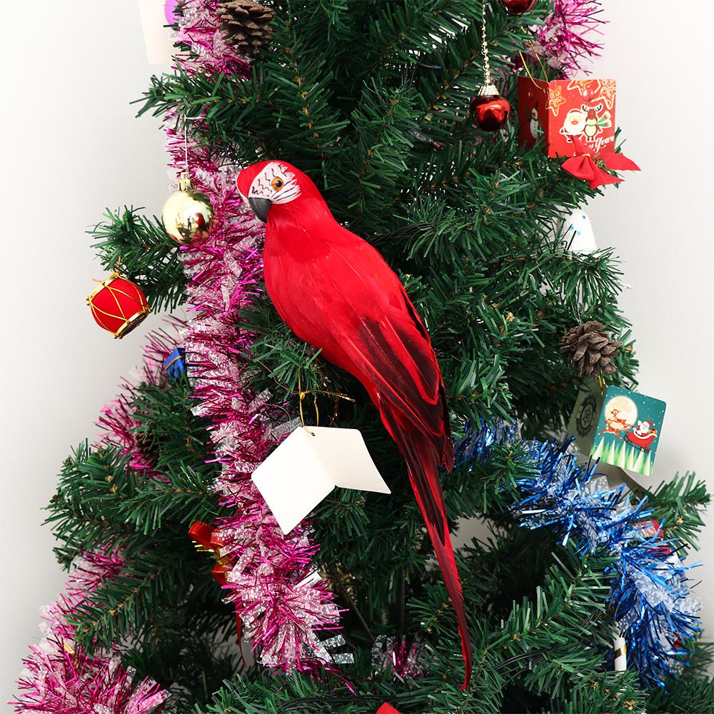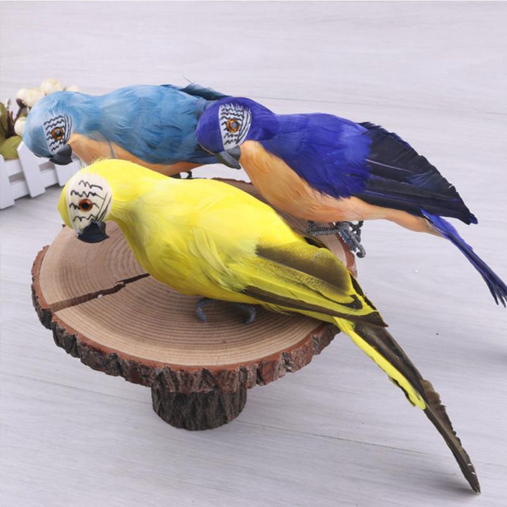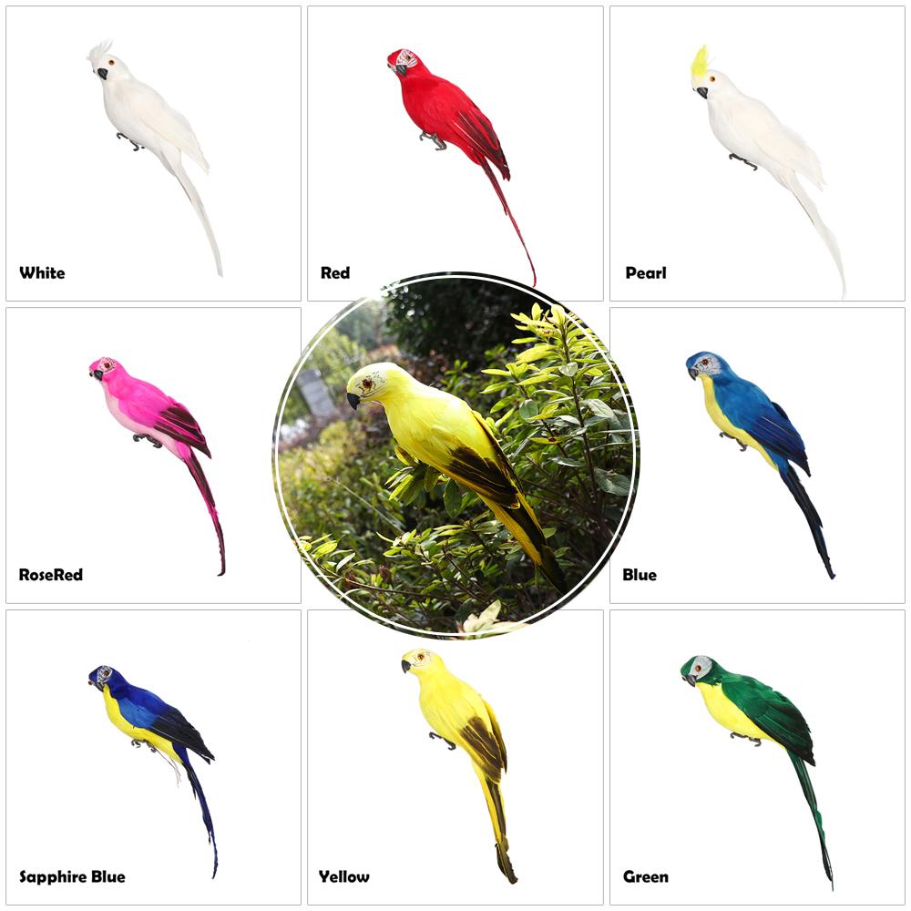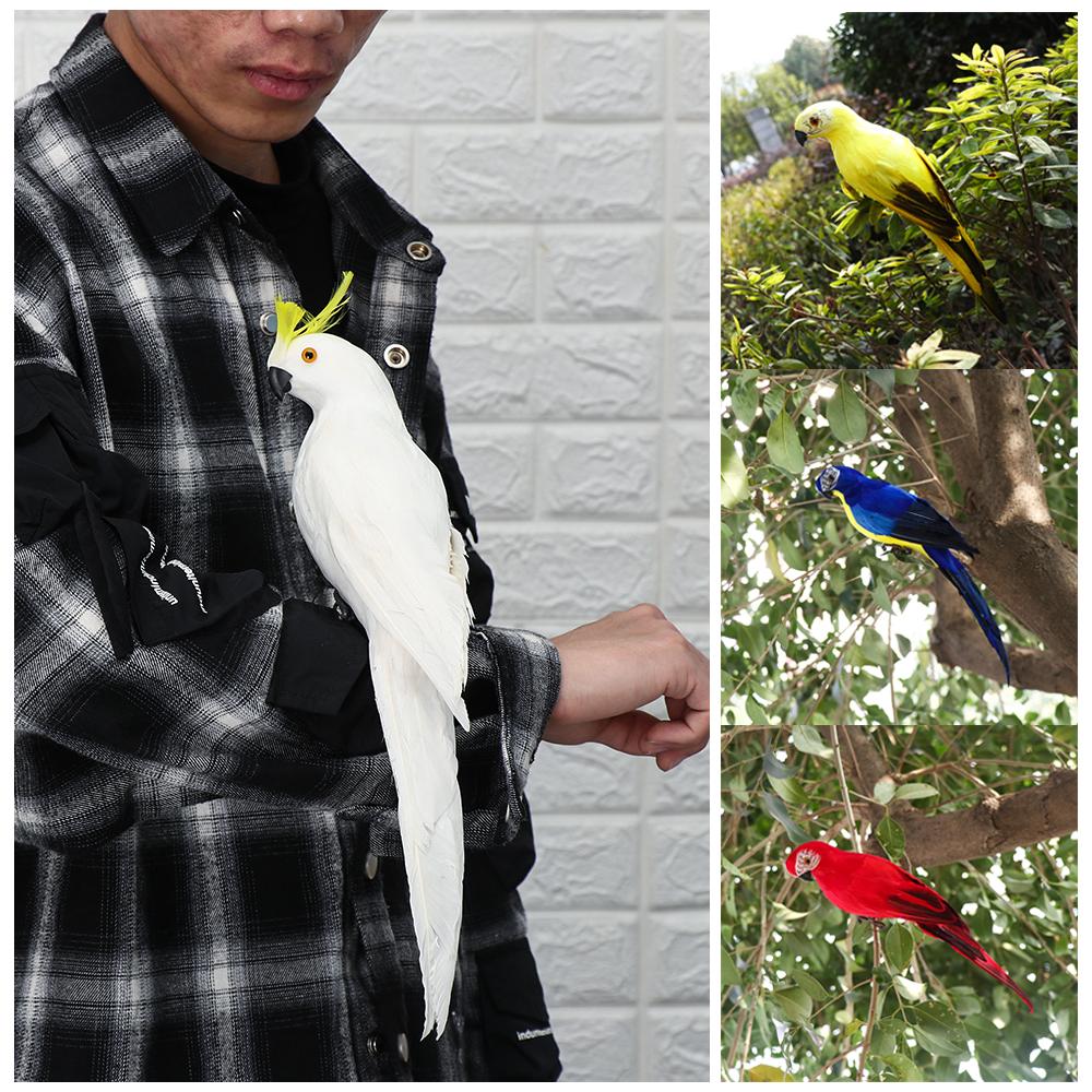 1 PC Creative Yard Ornament Garden Handmade Parrot Miniature Simulation Bird Feather Animal Figurine RED 35CM
