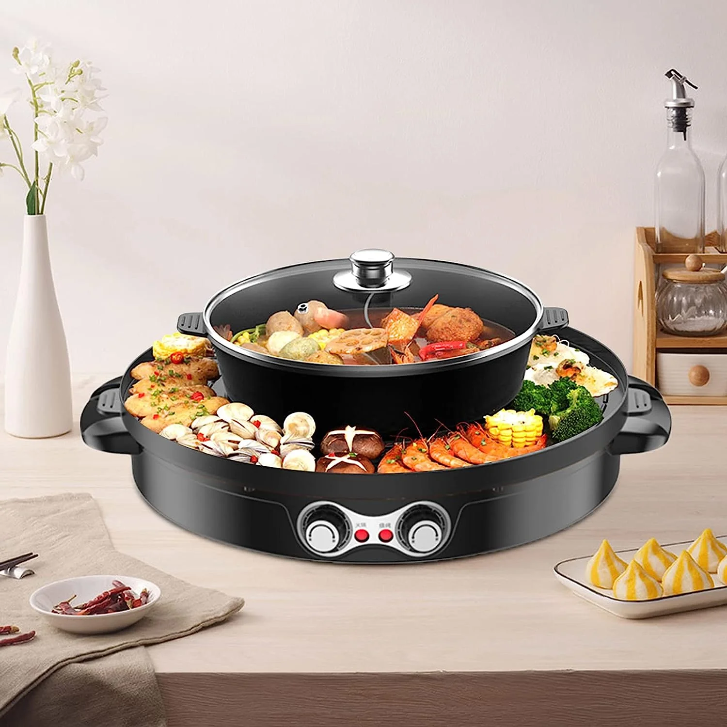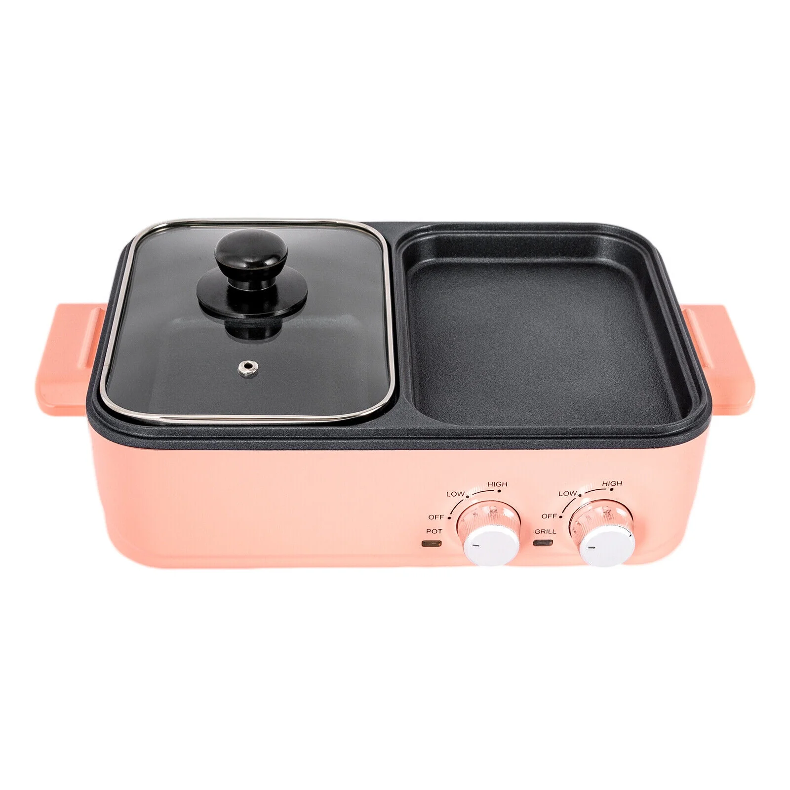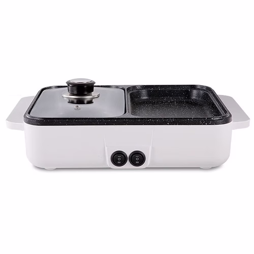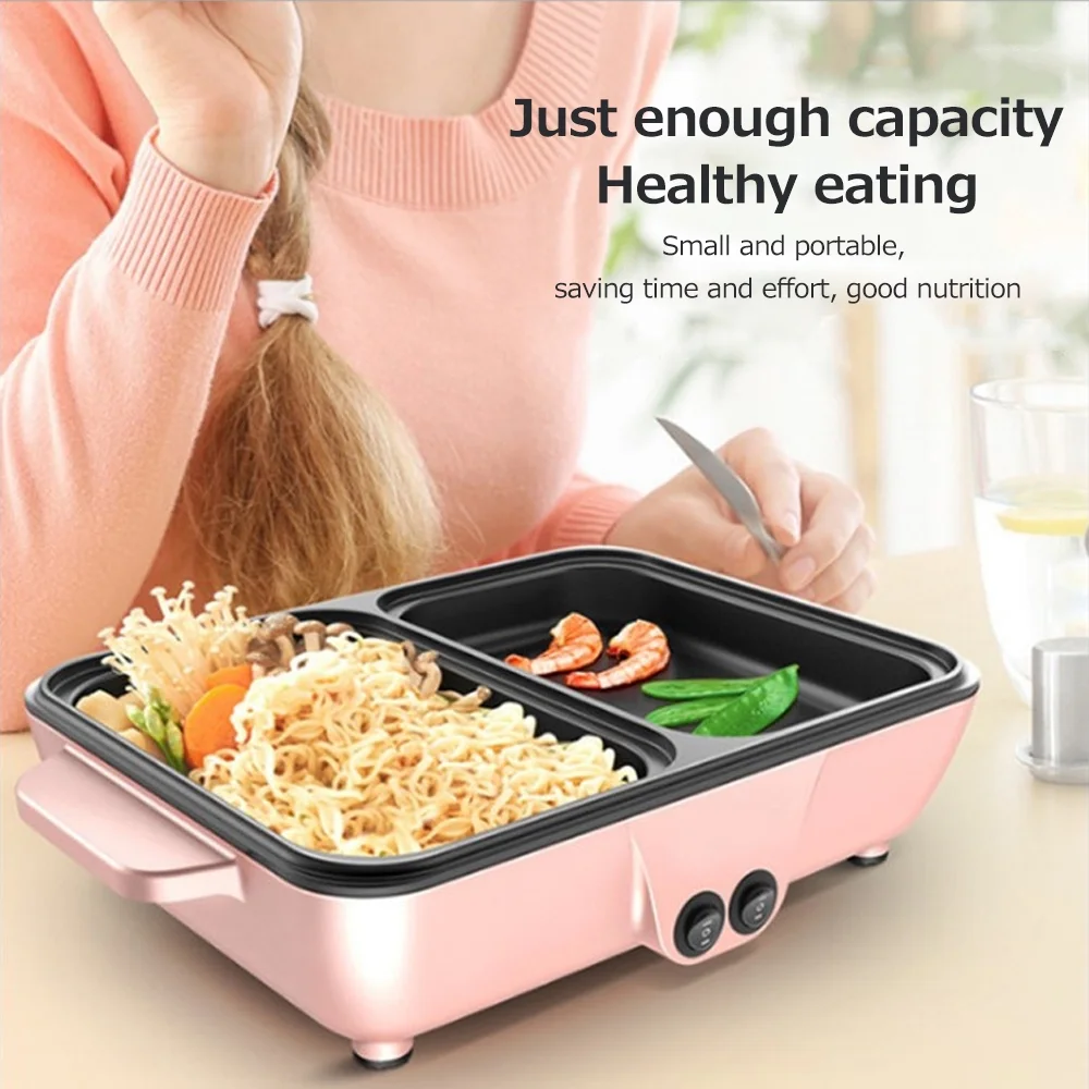 2 in 1 Portable Electric Hot Pot Barbecue Grill Non-Stick Teppanyaki Pan Soup Smokeless Baking Pan