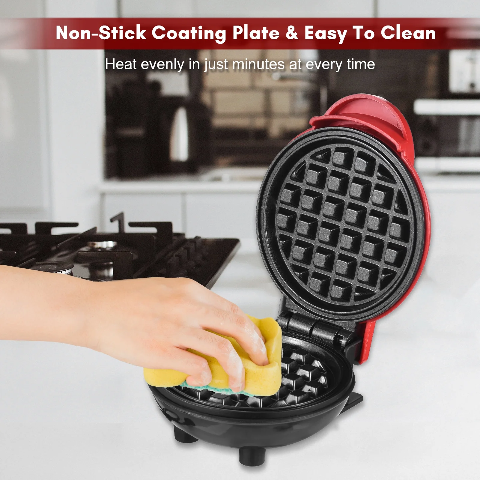 Suzicca 1000W Waffle Maker 5 Heart-Shaped Waffles Electric Waffler Griddle Iron