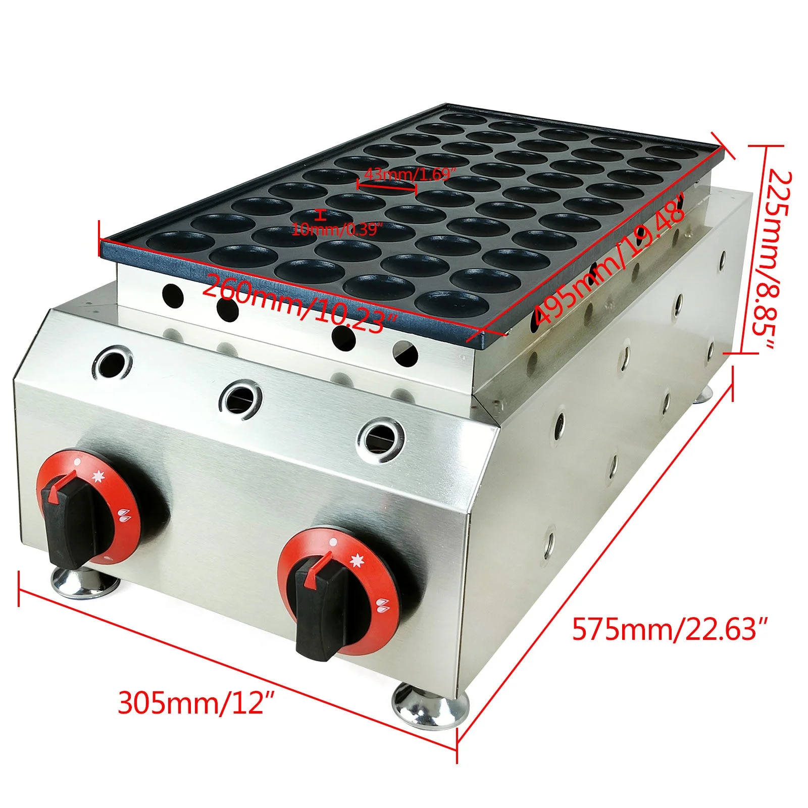 Commercial Gas Mini Dutch Pancakes 50 Holes LPG Baker Nonstick Waffle Maker