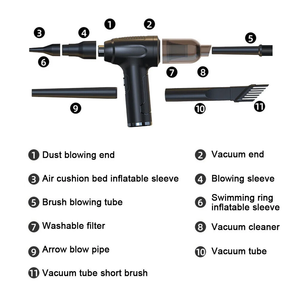 80000PA Cordless Handheld Vacuum Cleaner Mini Portable Home Car Wireless 3 in 1