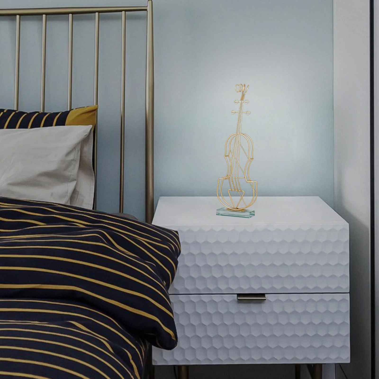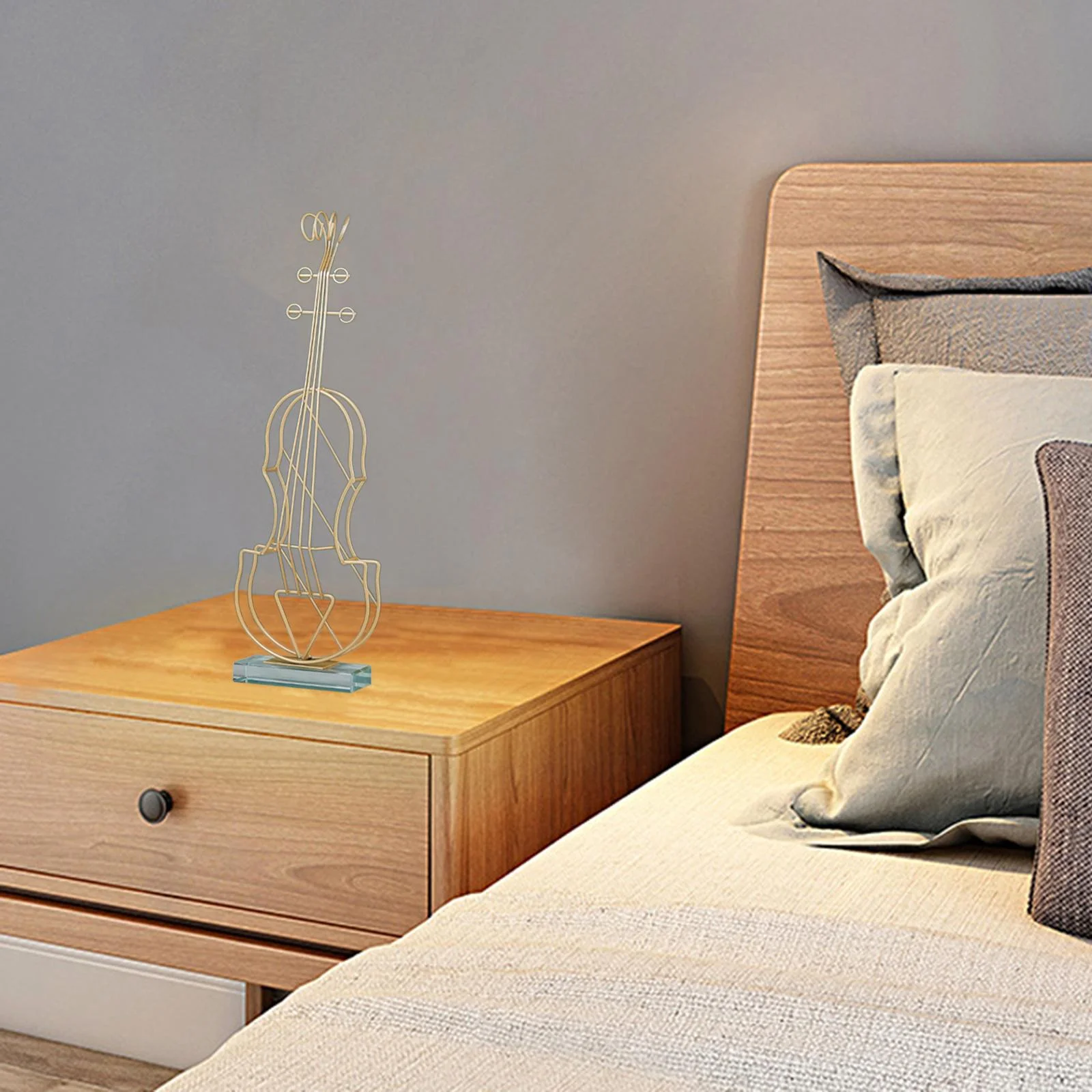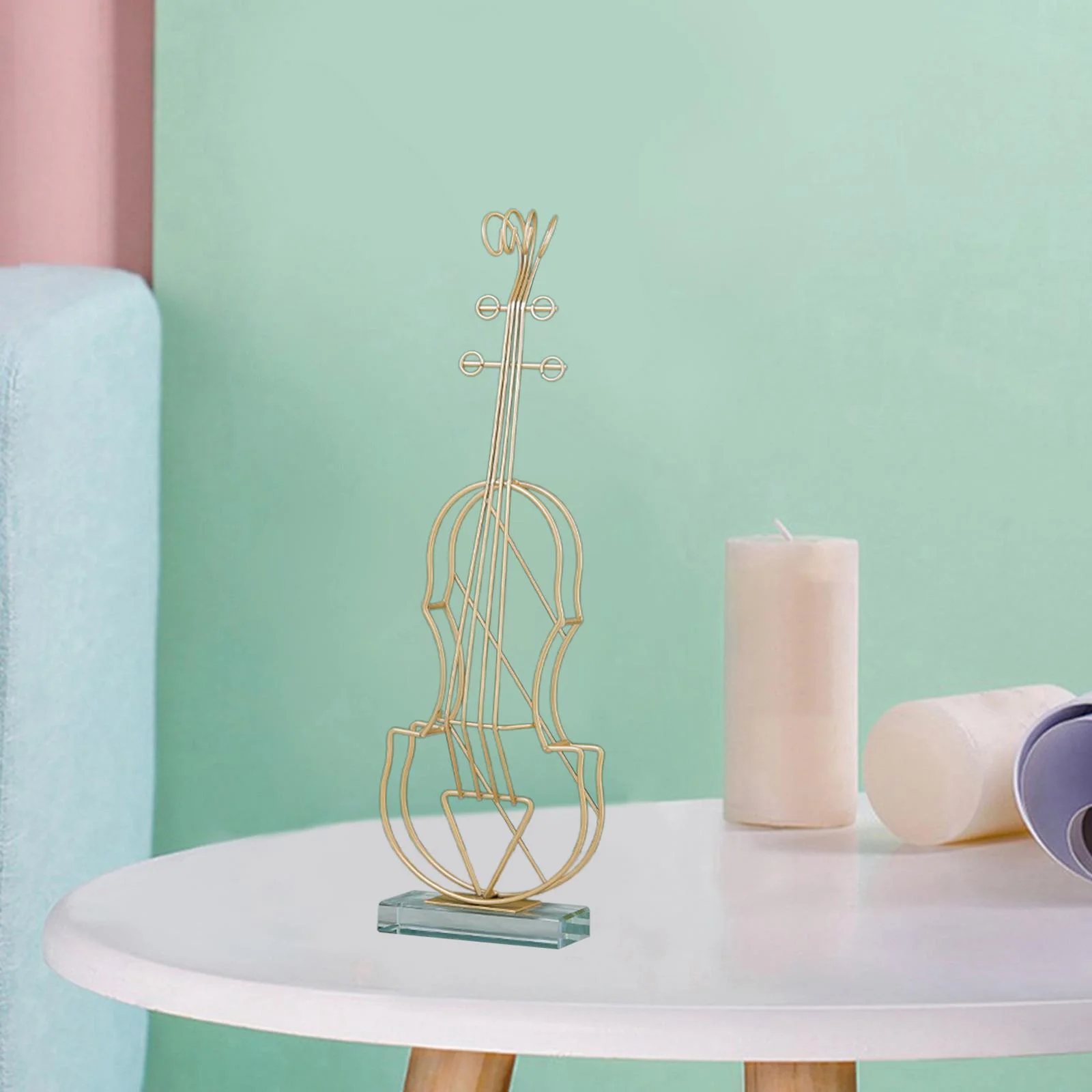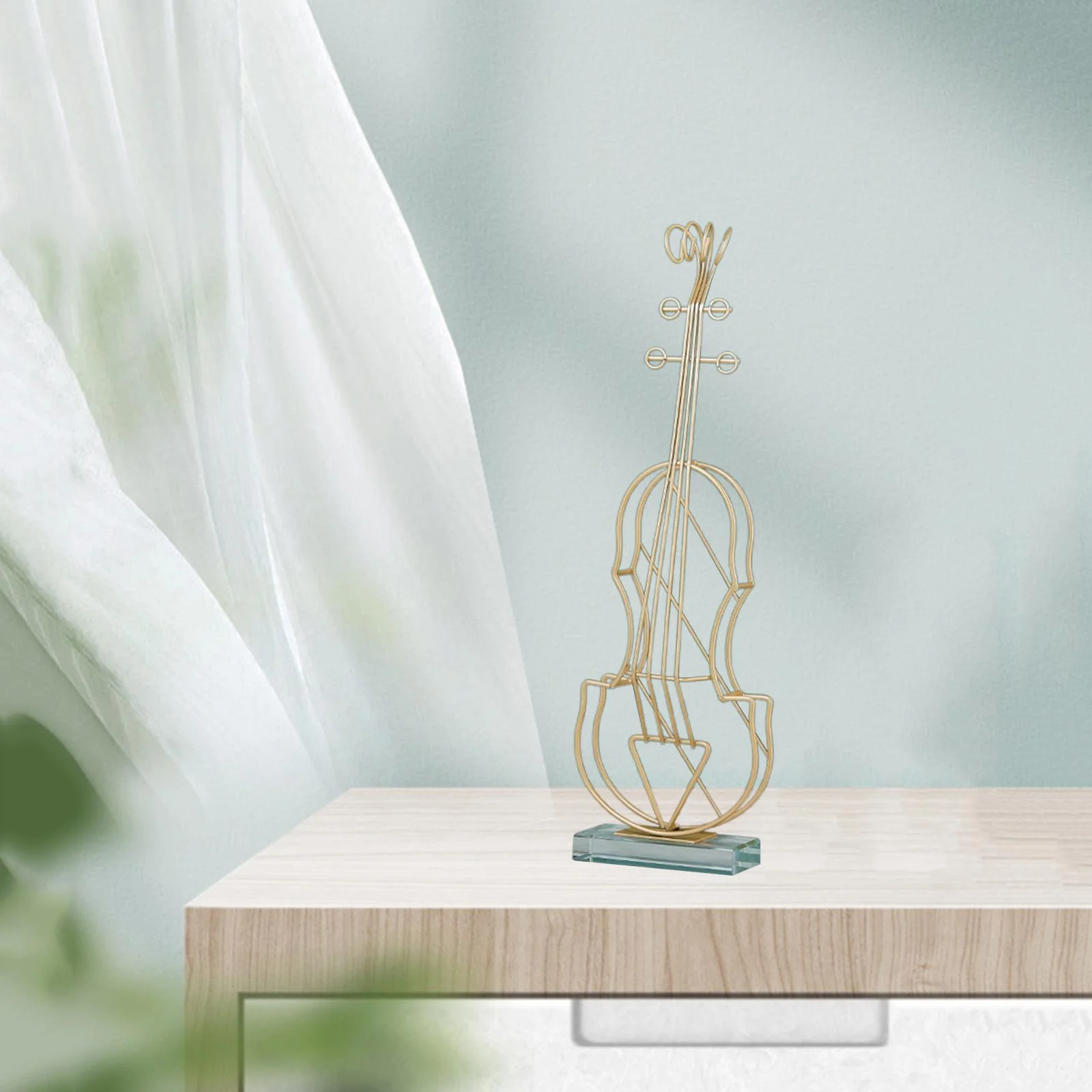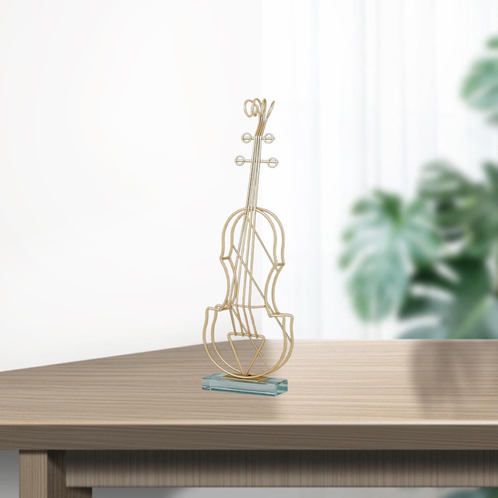 3D Music Instrument Statue Sculpture Figurine Metal with Glass Nordic Handmade Miniature for Table Living - Large Size Violin