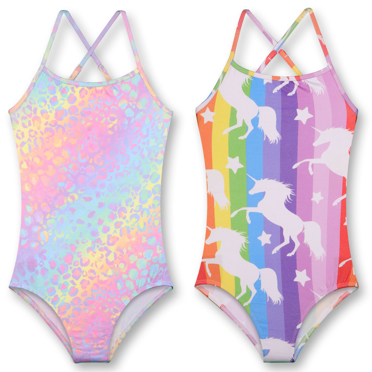 Yuyuekeji Girls Sparkle Swimsuits One Piece Hawaiian Beach Swimwear Bathing Swimsuit 4-9T
