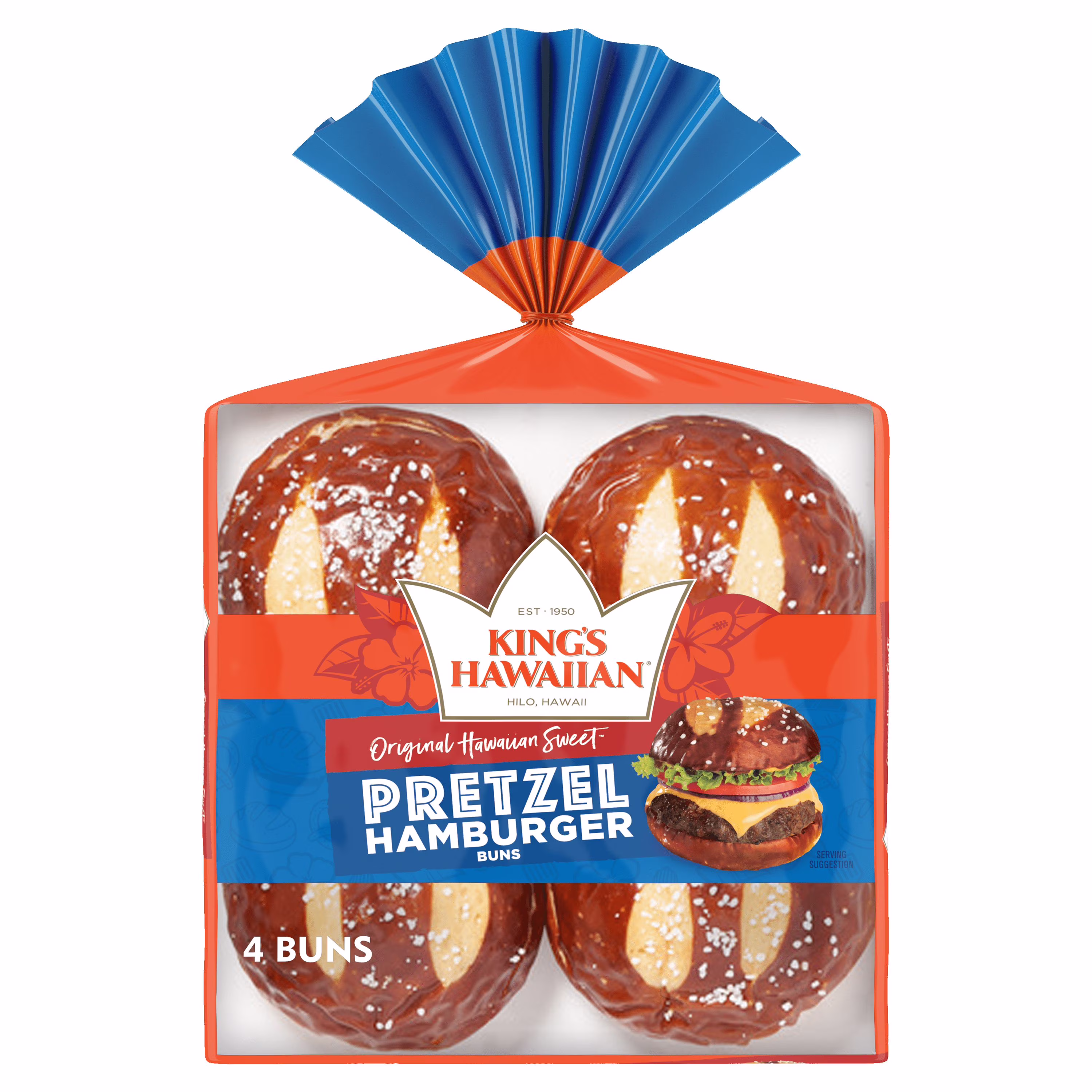 King's Hawaiian Pretzel Hamburger Buns, 4 Count, 10.5 oz
