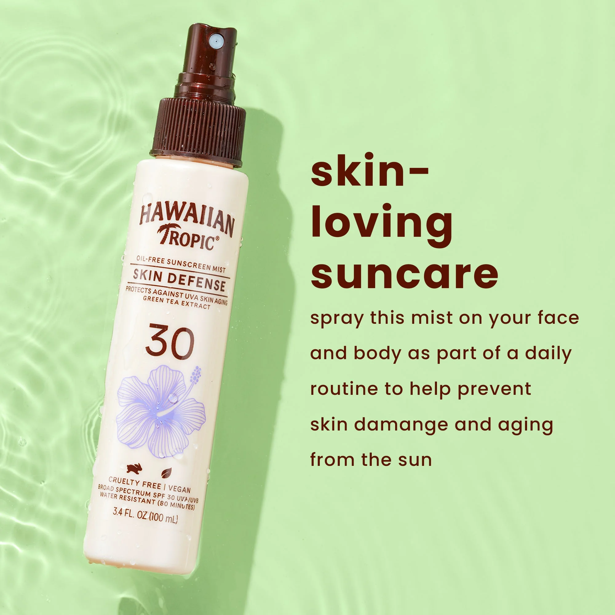 Hawaiian Tropic Skin Defense Sunscreen Mist SPF 30, 3.4oz Travel Size