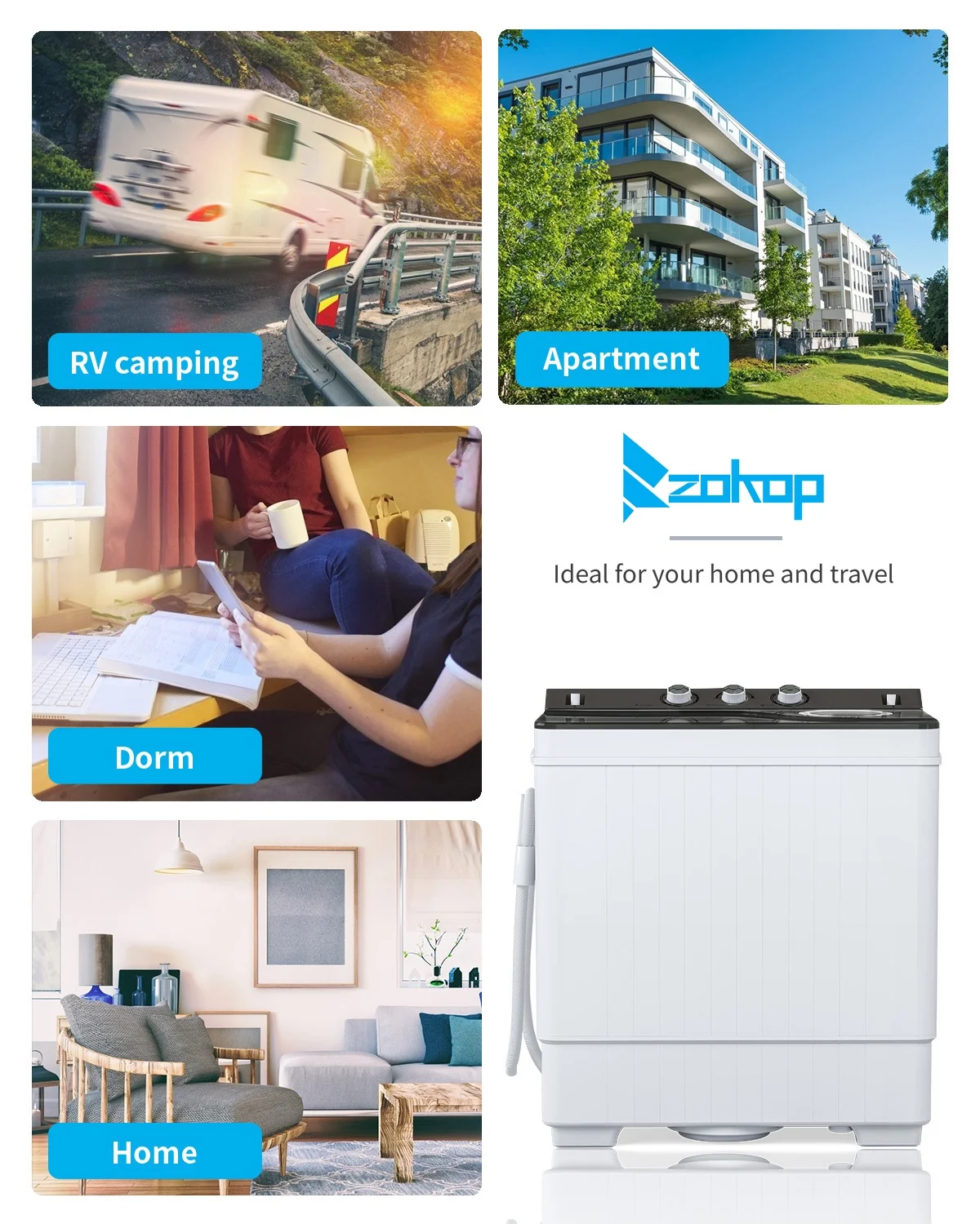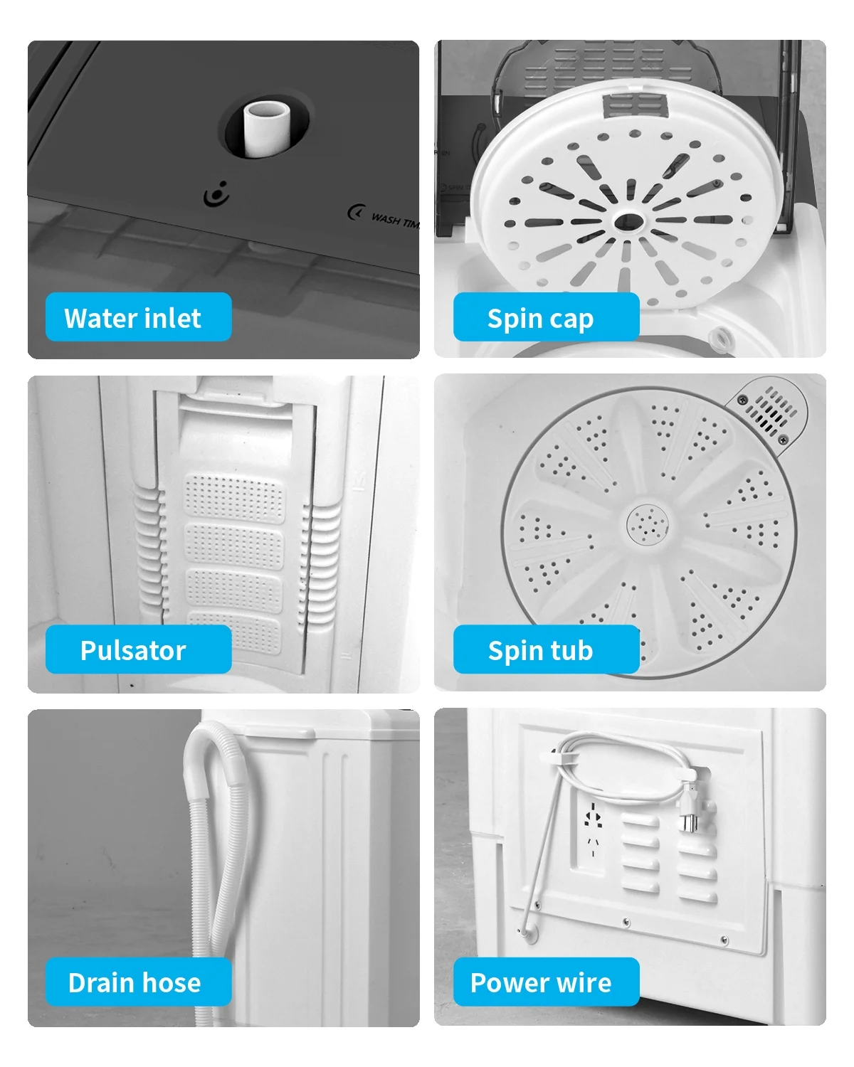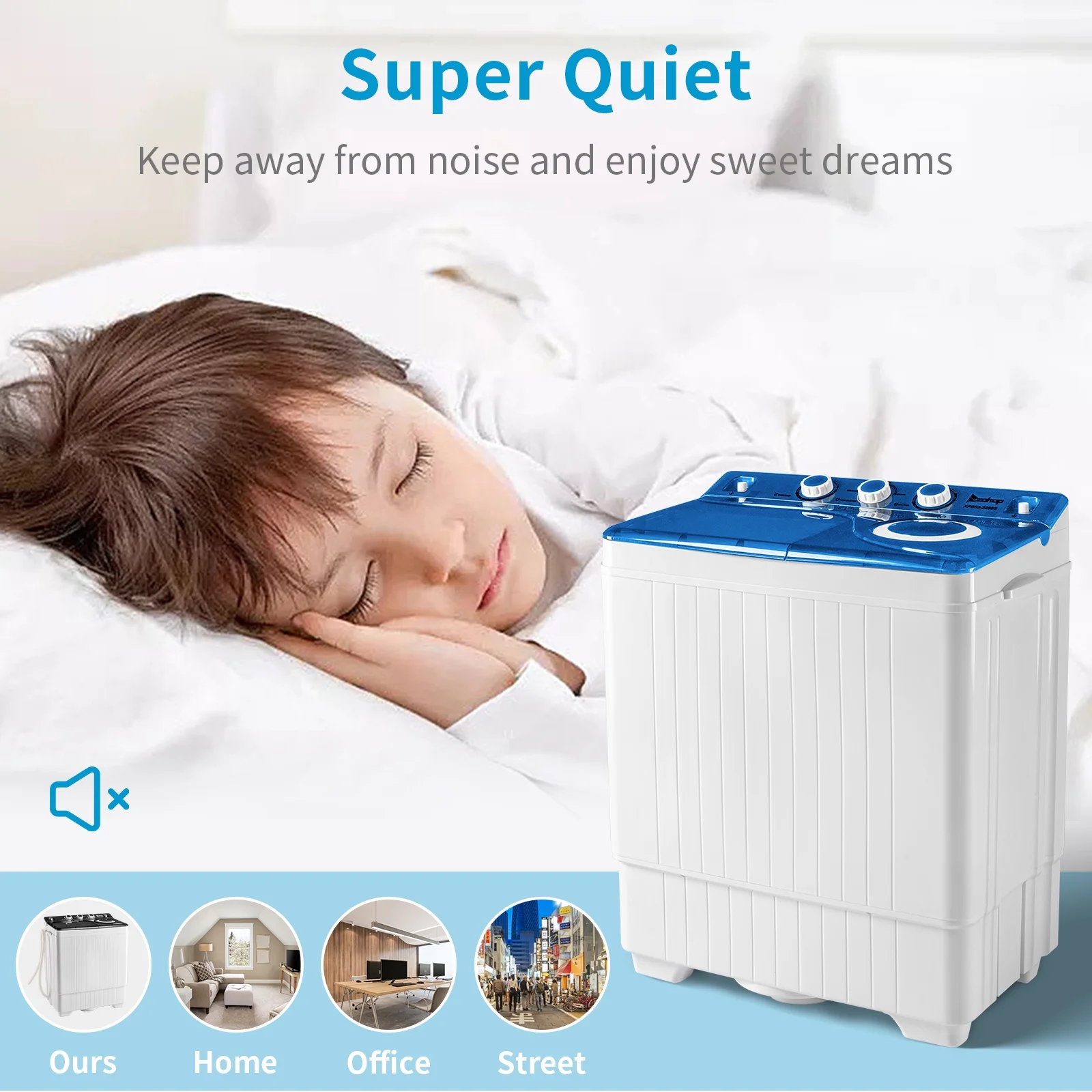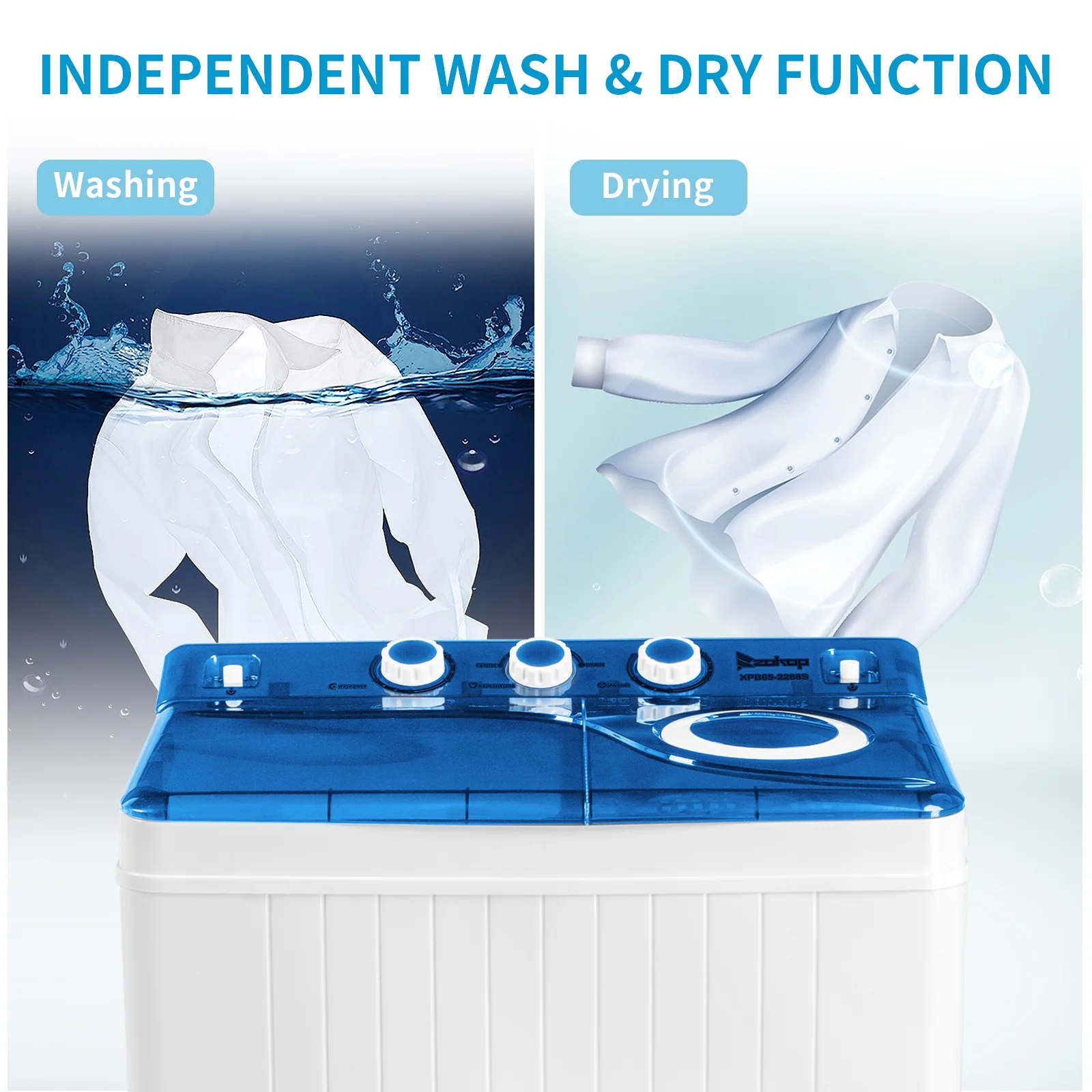 26Lbs Semi-automatic Twin Tube Washing Machine for Apartment, Dorms, RVs, Camping White & Blue