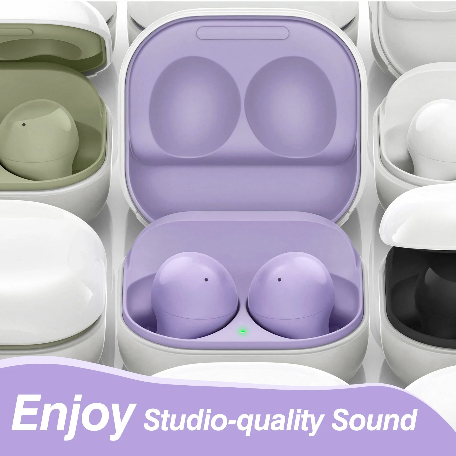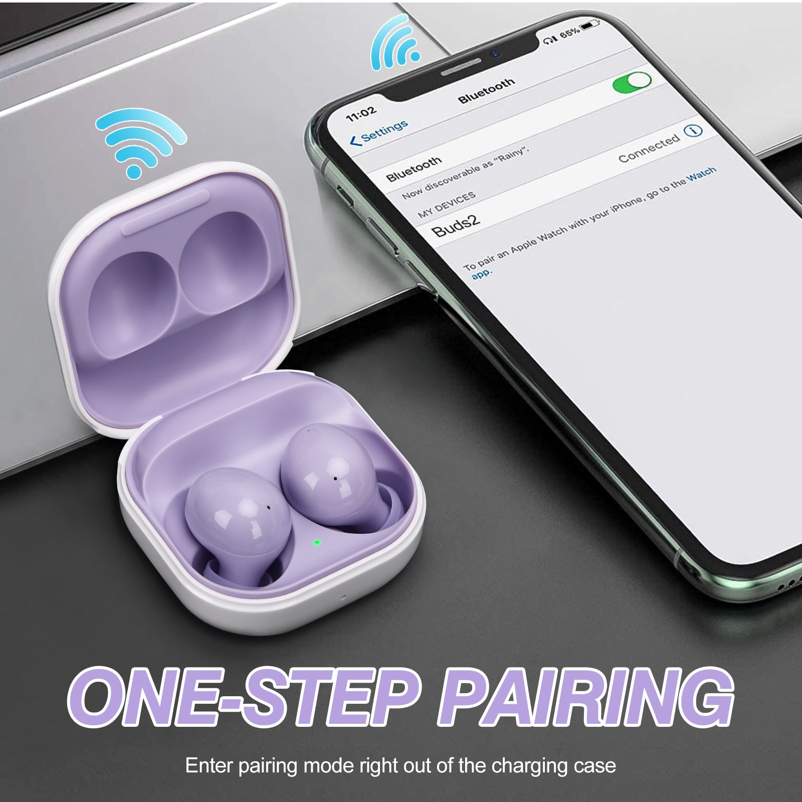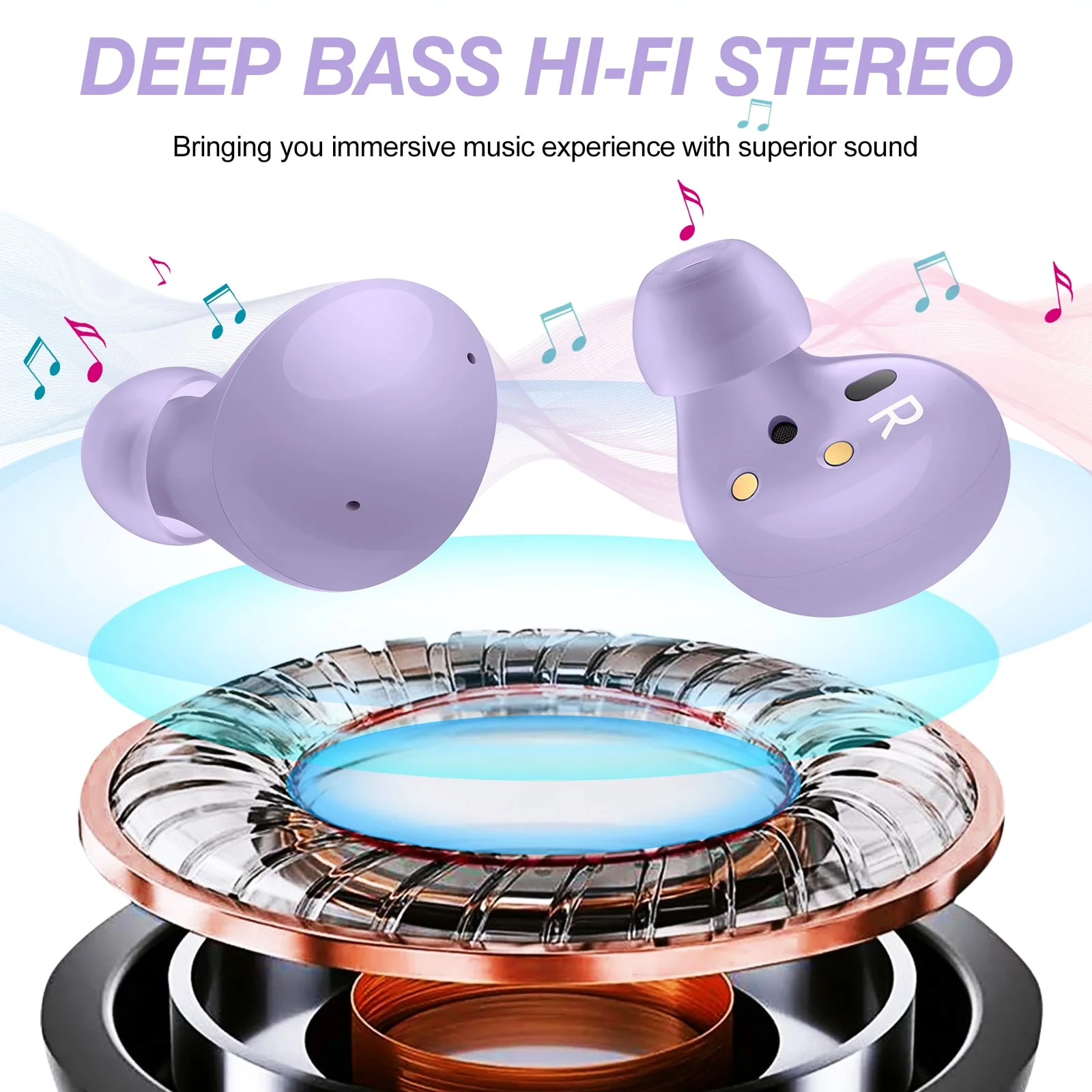 UrbanX Street Buds 2 for LG Q52 - Truly Wireless Bluetooth Headphones with Noise Isolation, Amplified Bass and Dual Dynamic Microphone - Purple