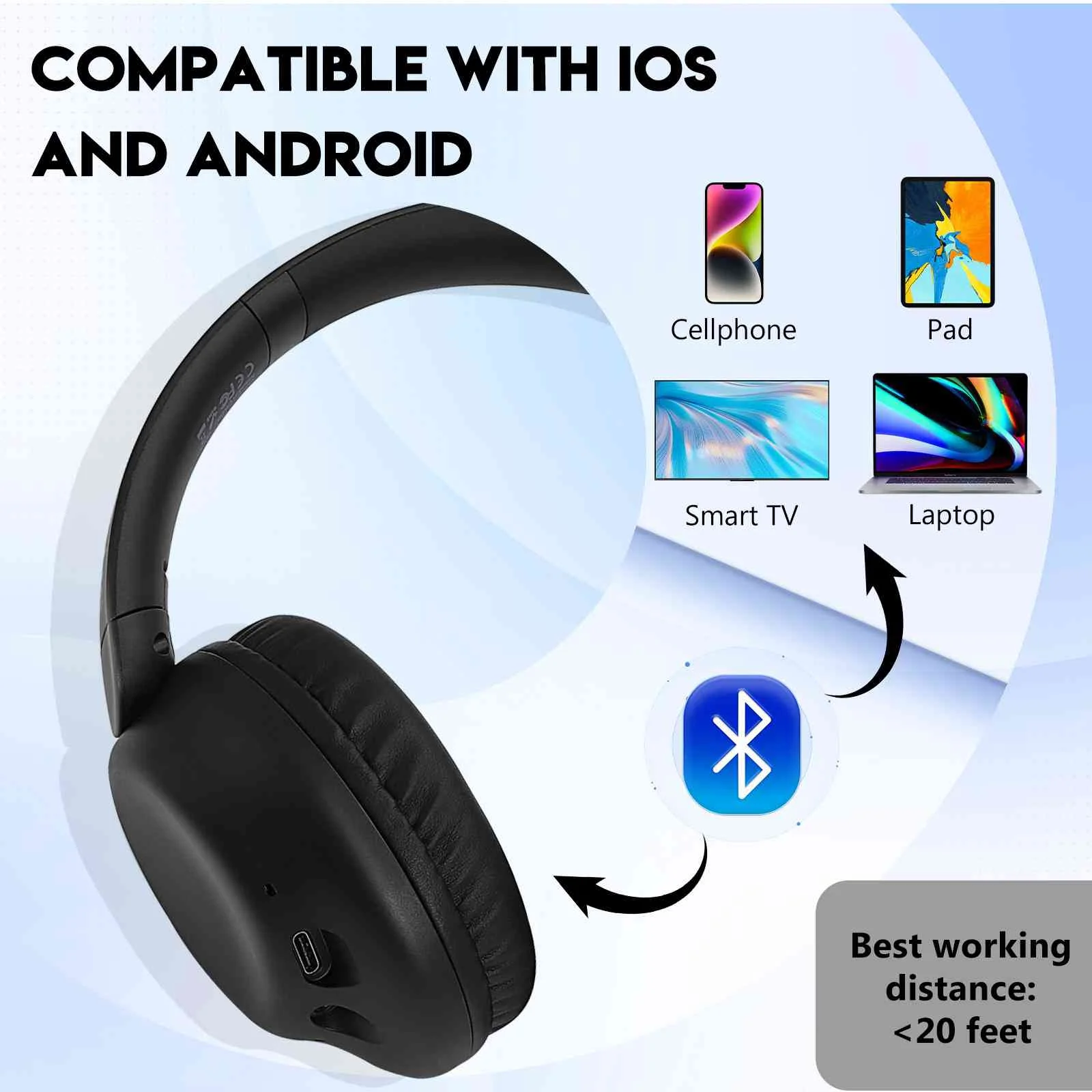 UrbanX UX35 Wireless Bluetooth Stereo Earphones with High Resolution Audio, Deep Bass, Superior Comfort Over The Ear Headphones with Mic for LG Velvet Phone Call Support