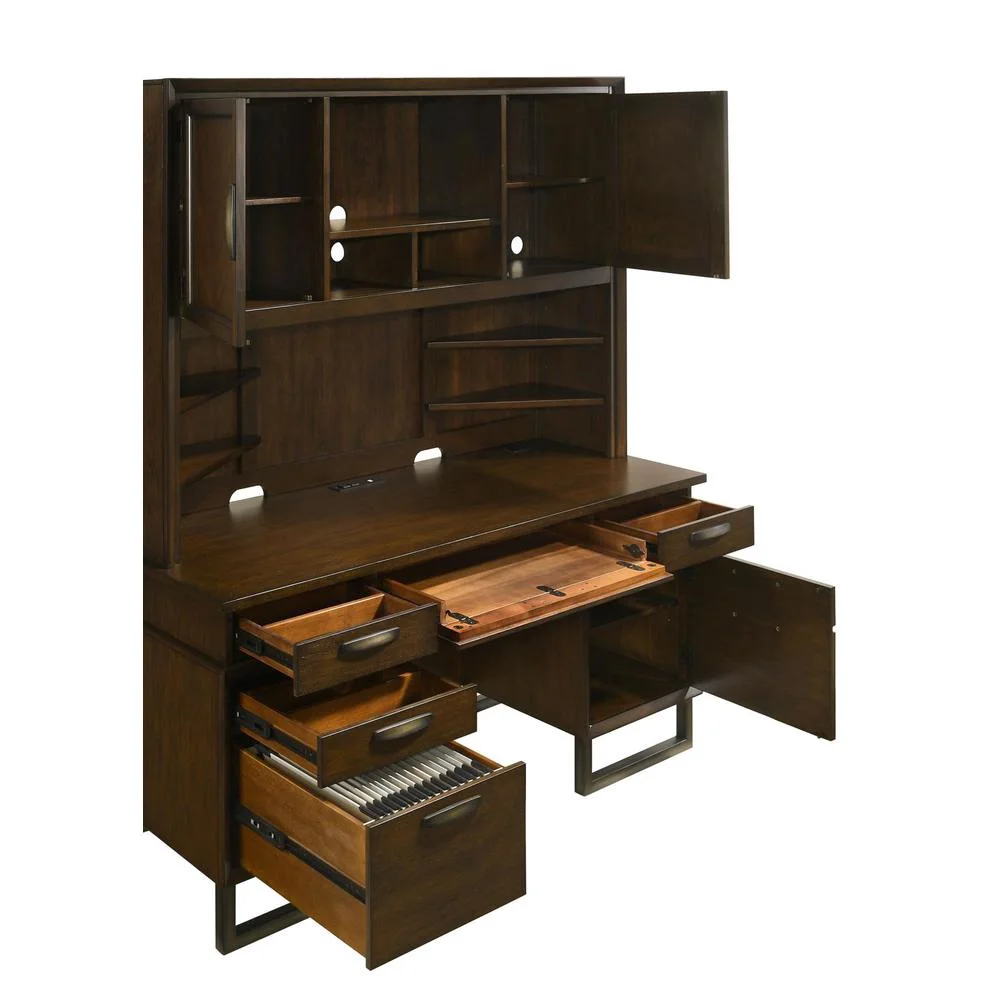 Coaster Marshall 7-drawer Wood Credenza Desk Dark Walnut and Gunmetal
