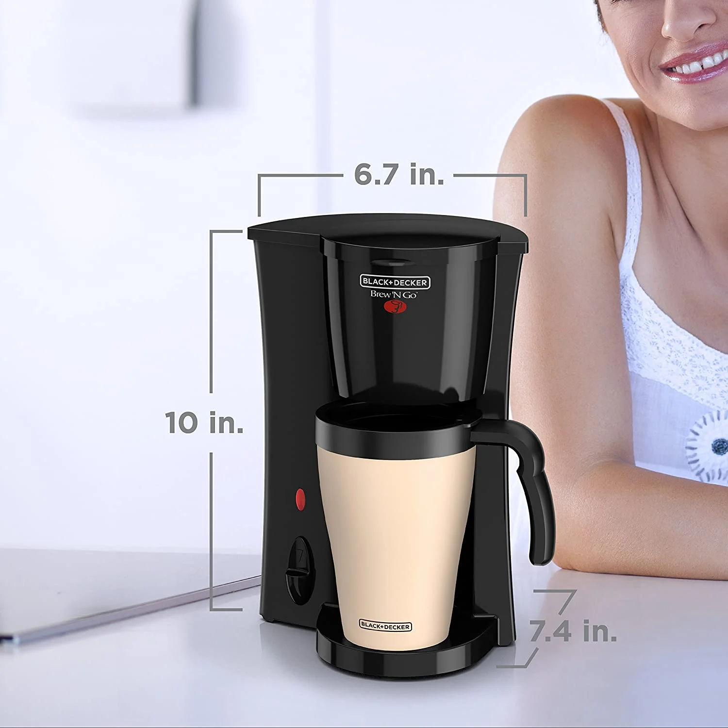 BLACK+DECKER Brew 'n Go Personal Coffeemaker with Travel Mug, Black/Beige, DCM18