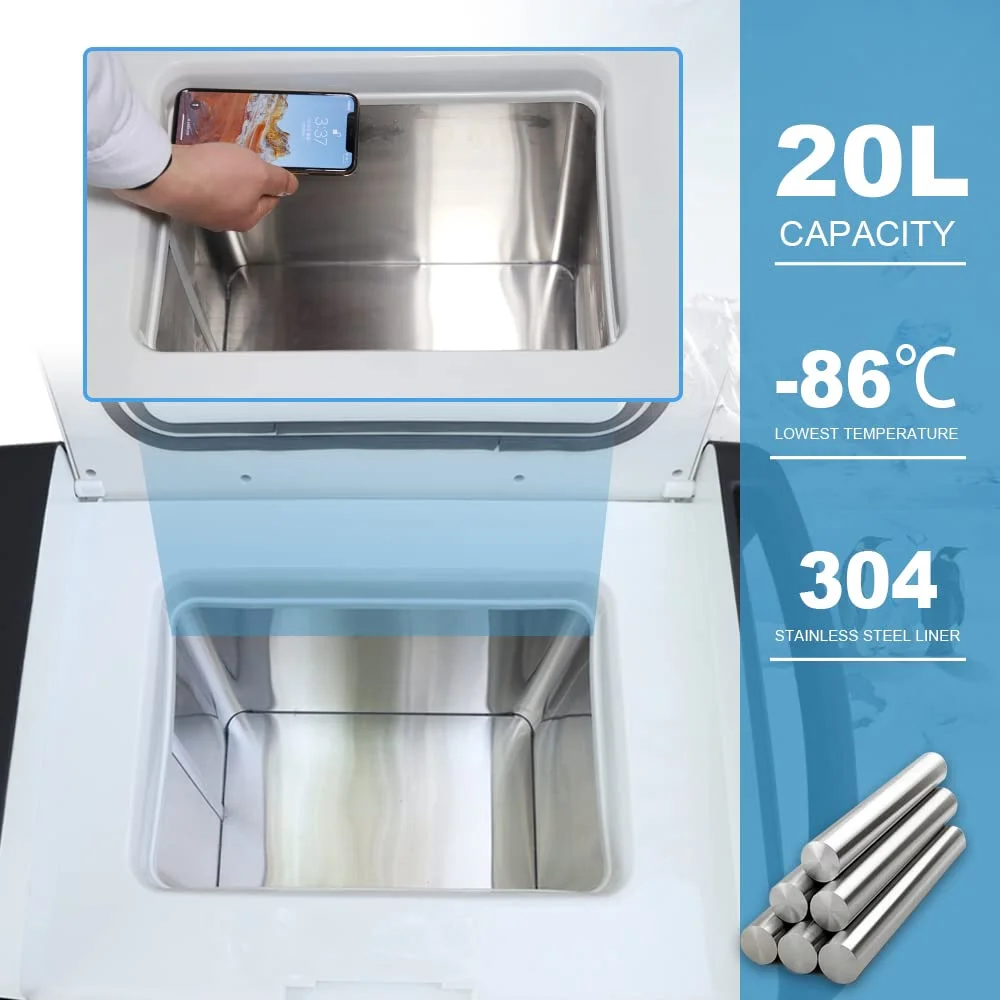 20L Ultra-Low Chest Freezer Black Cold Storage Box Laboratory Fridge -45℃~ -86℃