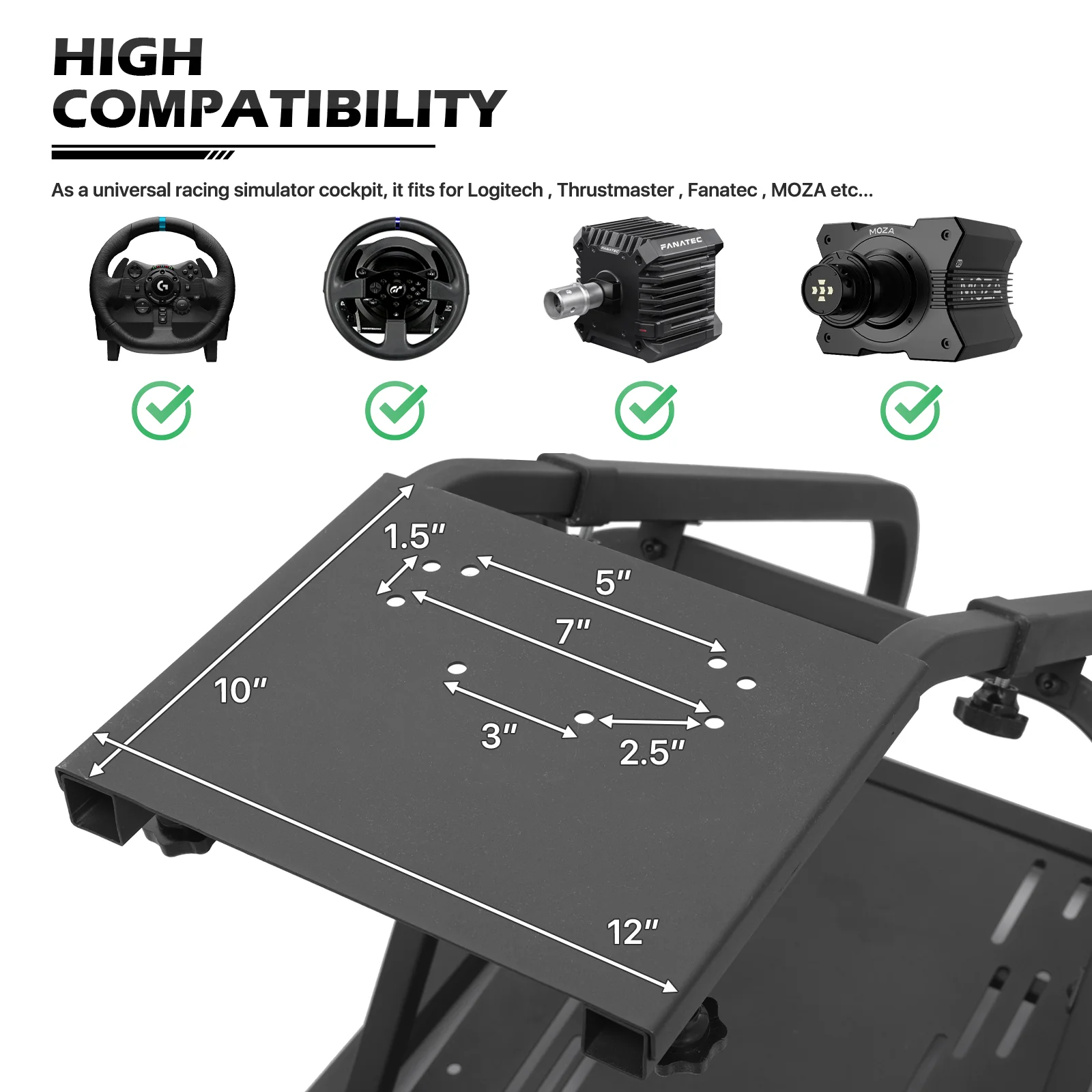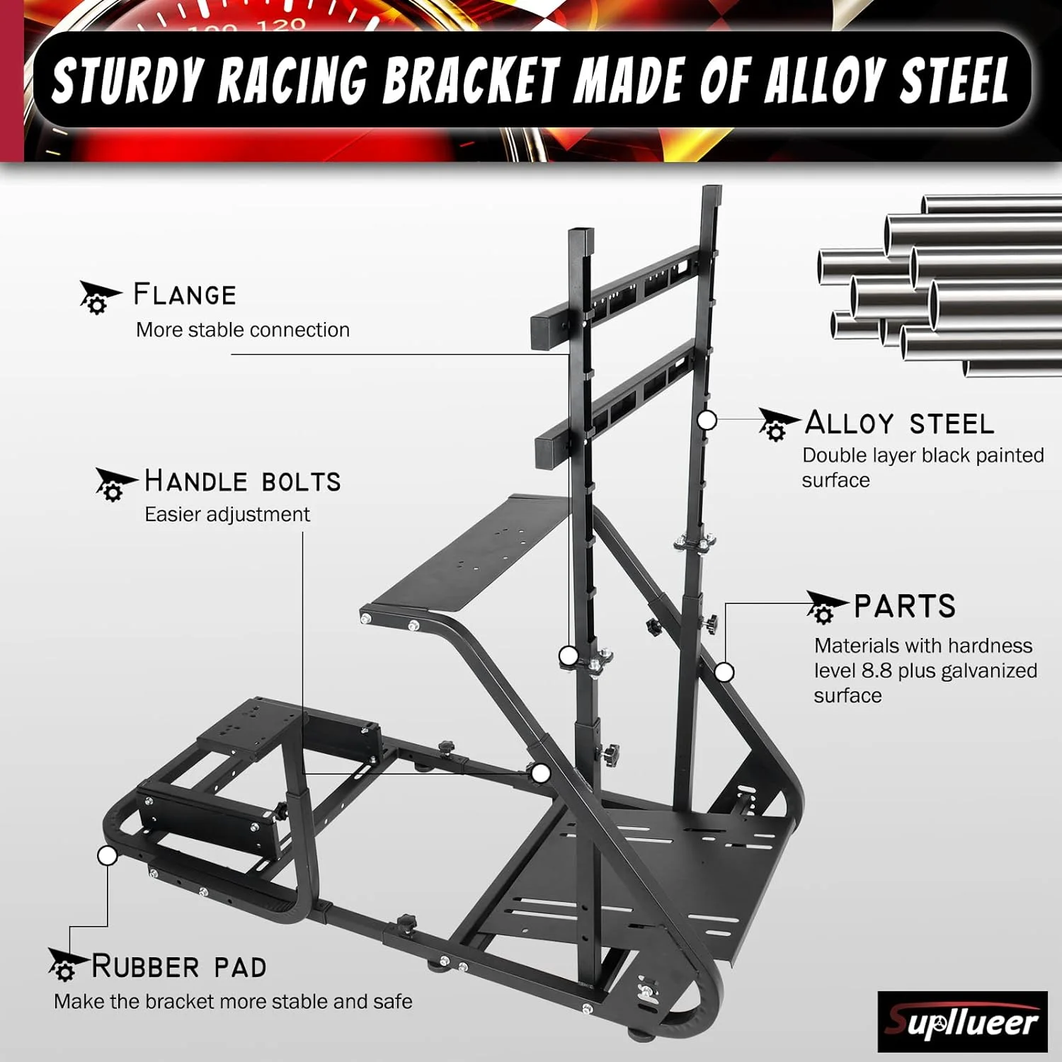 Supllueer Racing Sim Cockpit 50mm Round Tube Fit Logitech G29 G920 G923 Thrustmaster T300 Fanatec