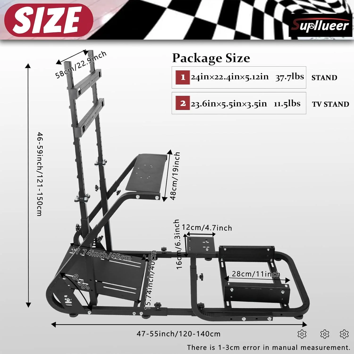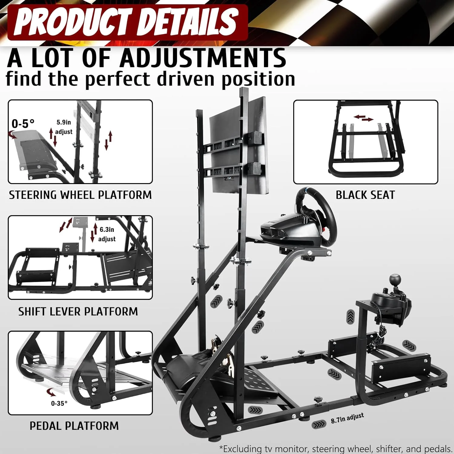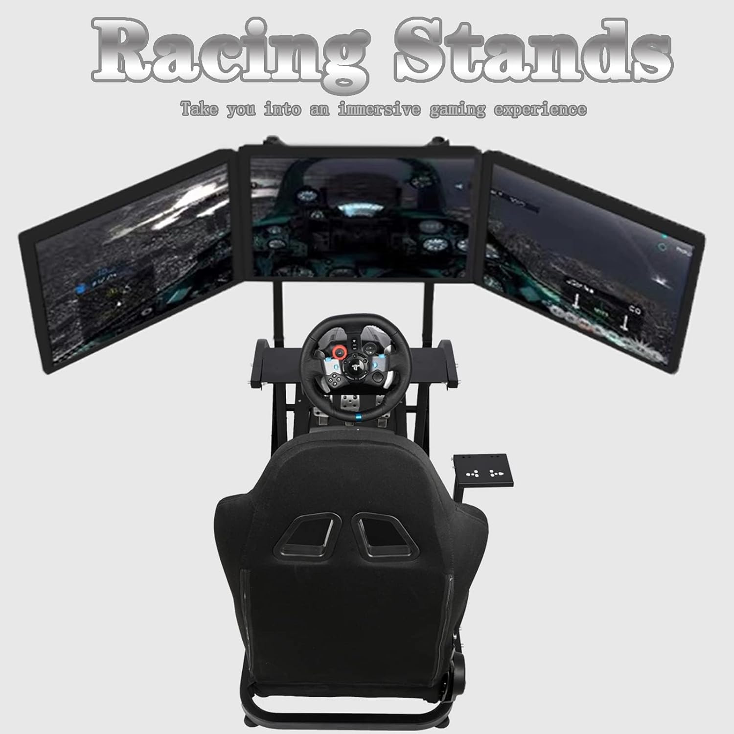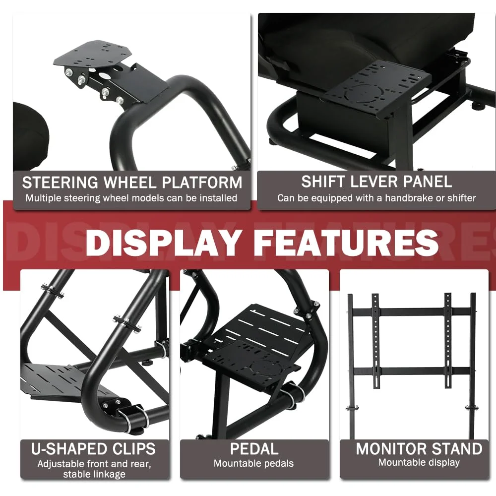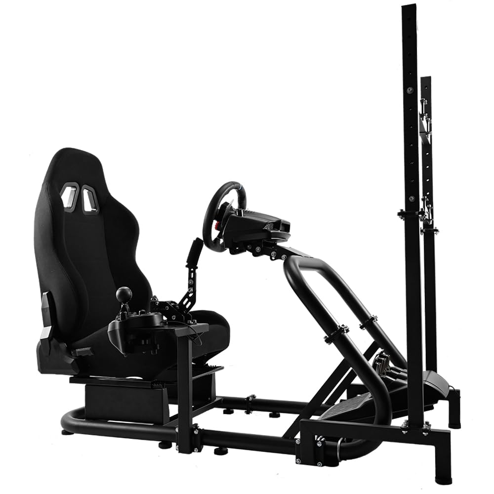 Supllueer G29 Racing Sim Cockpit Stand with TV Stand Mounting Holes Fit Logitech Fanatec Thrustmaster