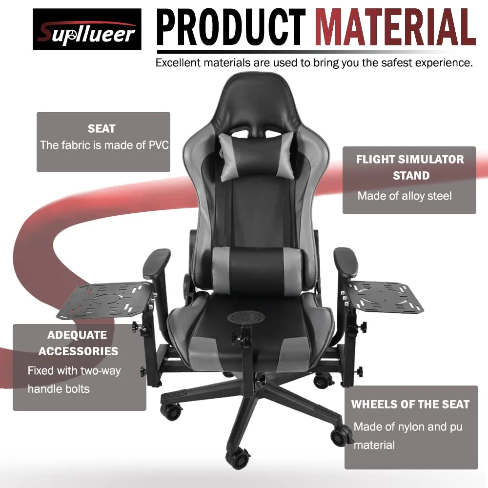 Supllueer Flight Sim Stand with Gaming Seat Fit Thrustmaster A10C Hotas Warthog Logitech X52