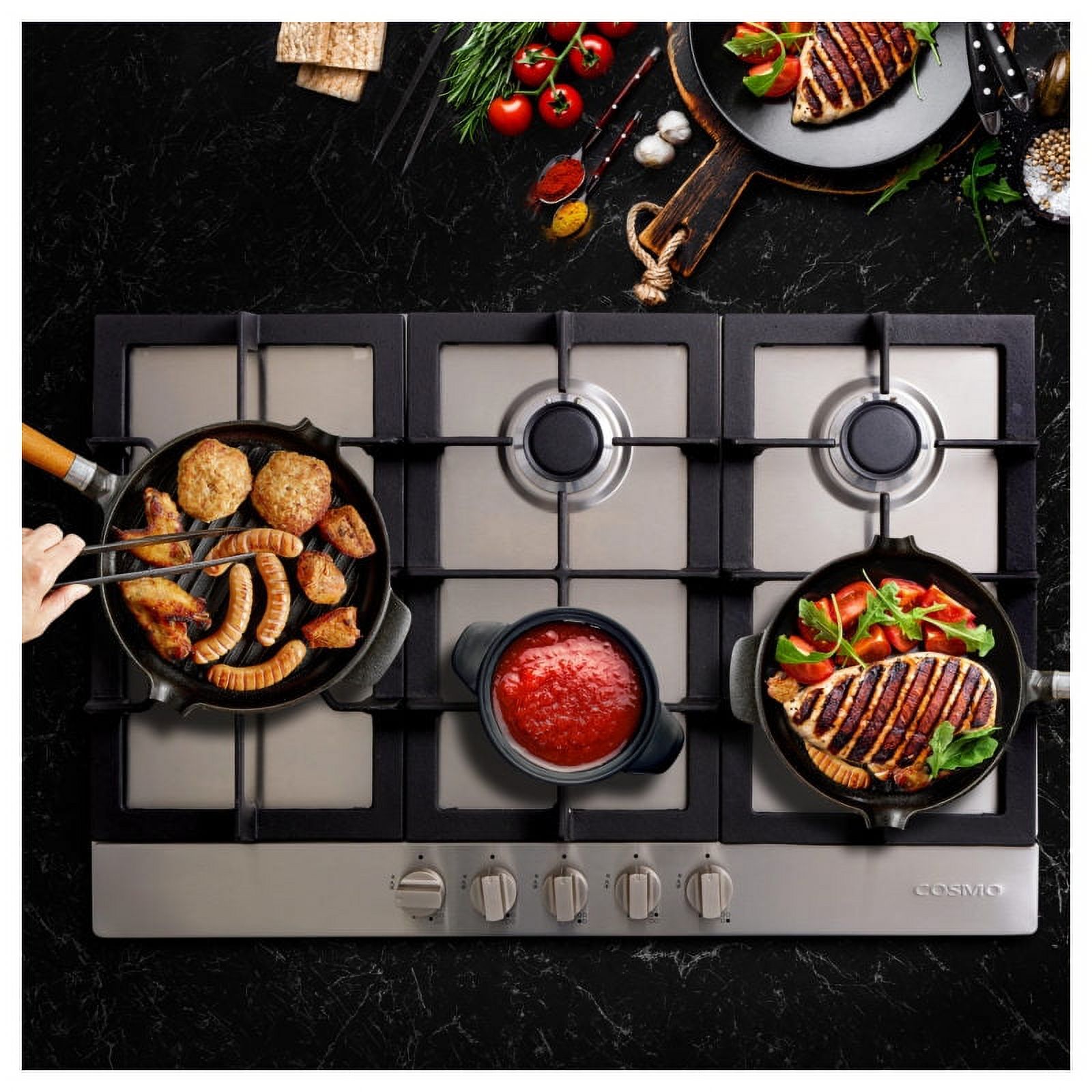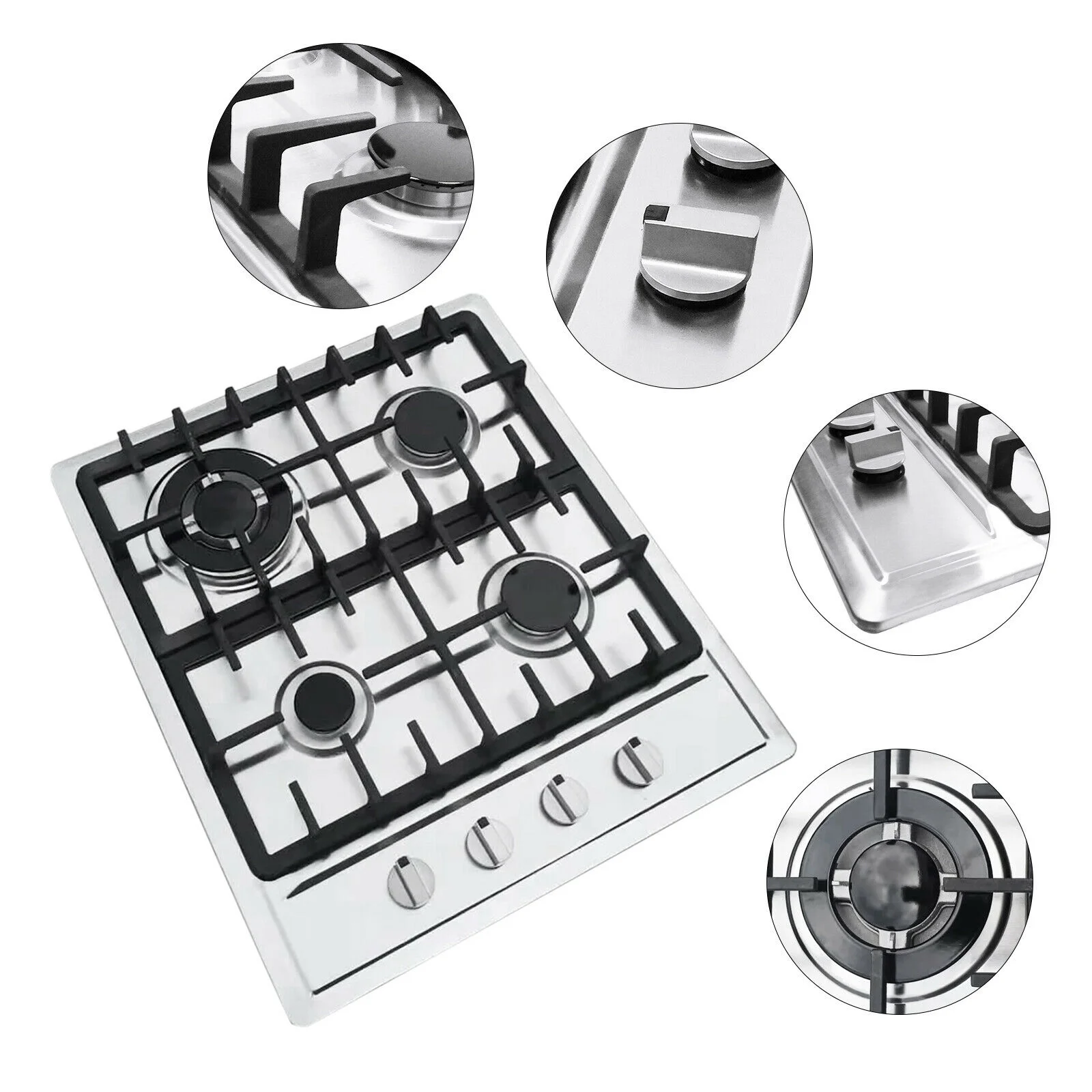Fetcoi, Stainless Steel 4-Burner Gas Cooktop,Built-In Gas Cooktop Iron Pot frame Cooktop Kitchen