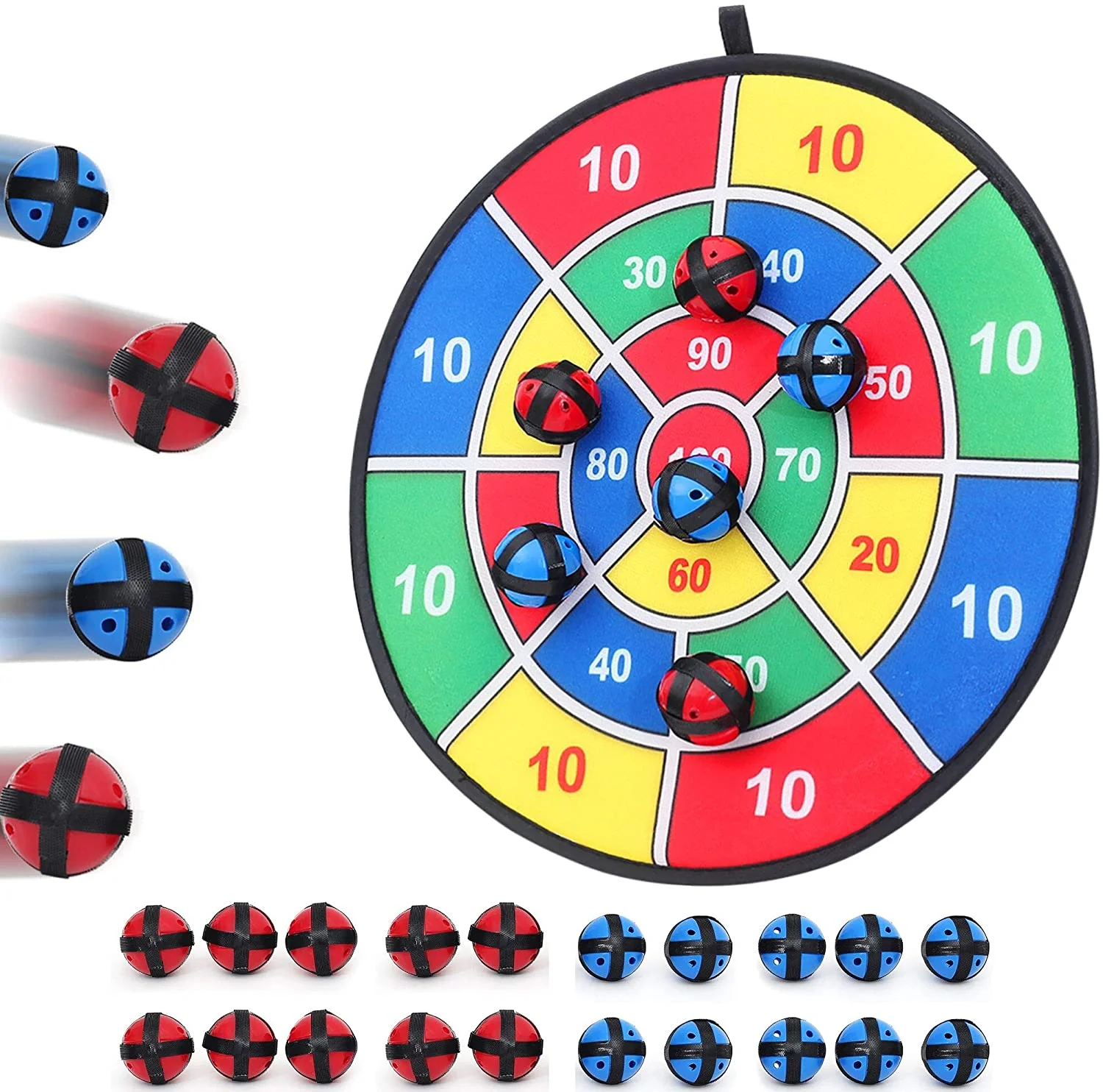 Fabric Dart Board Game with 20 Balls - Hook-and-Loop Fasteners- 14.5 Inches Diameter - Safe for Kids