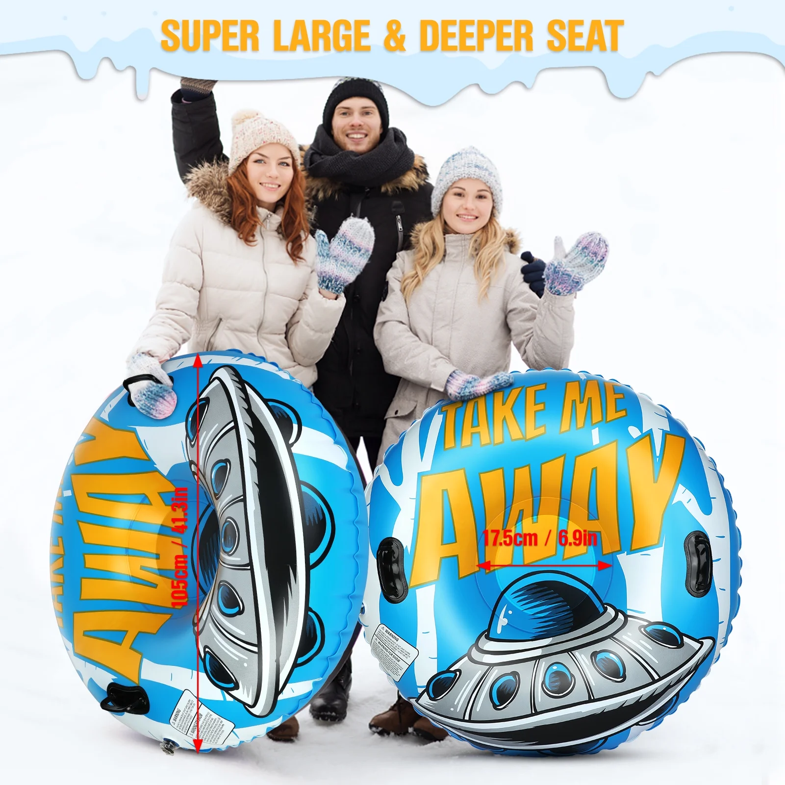 Aibecy Inflatable Ski Ring Snow Tube with Handle, Thicken PVC Sledding Tube for Winter Fun