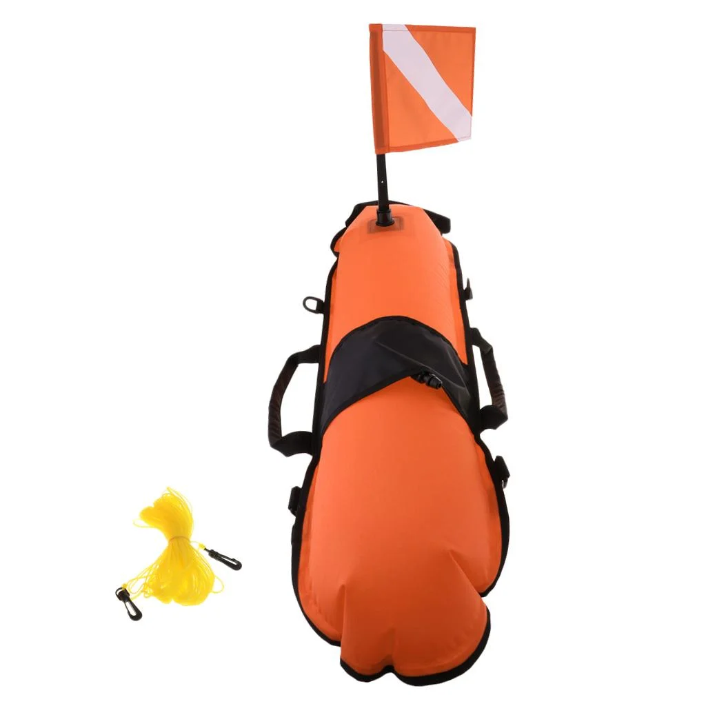 Scuba Diver Below Inflatable Signal Float Marker Buoy with Dive , Tow Line -
