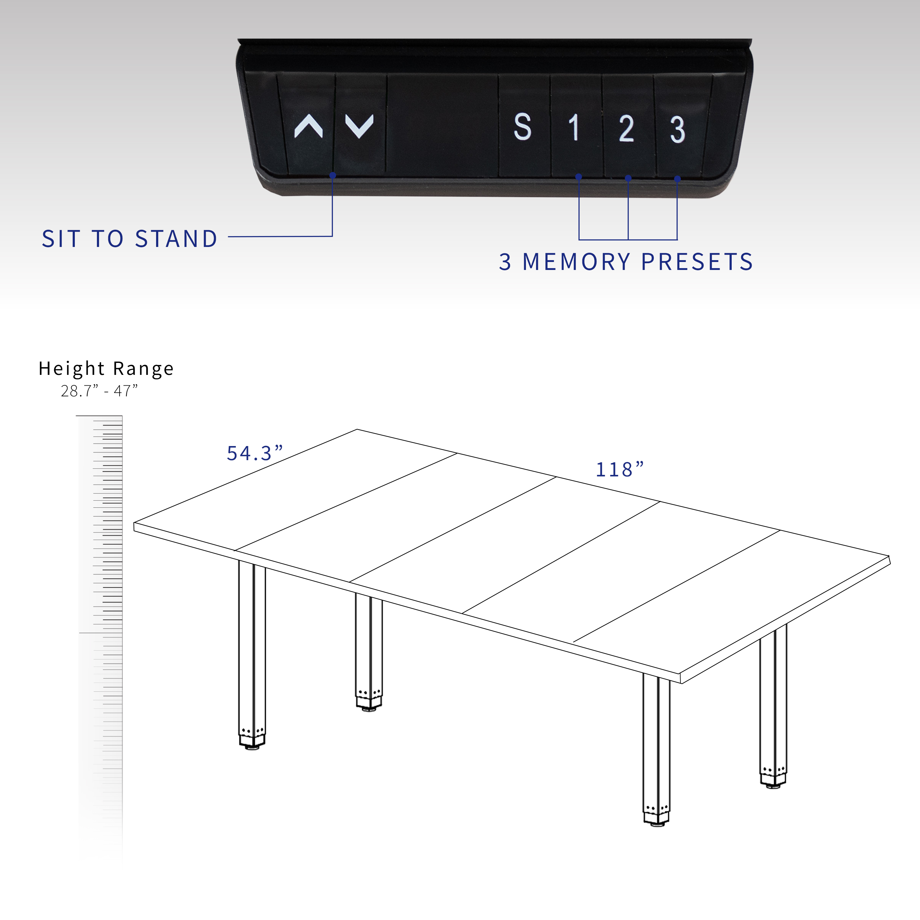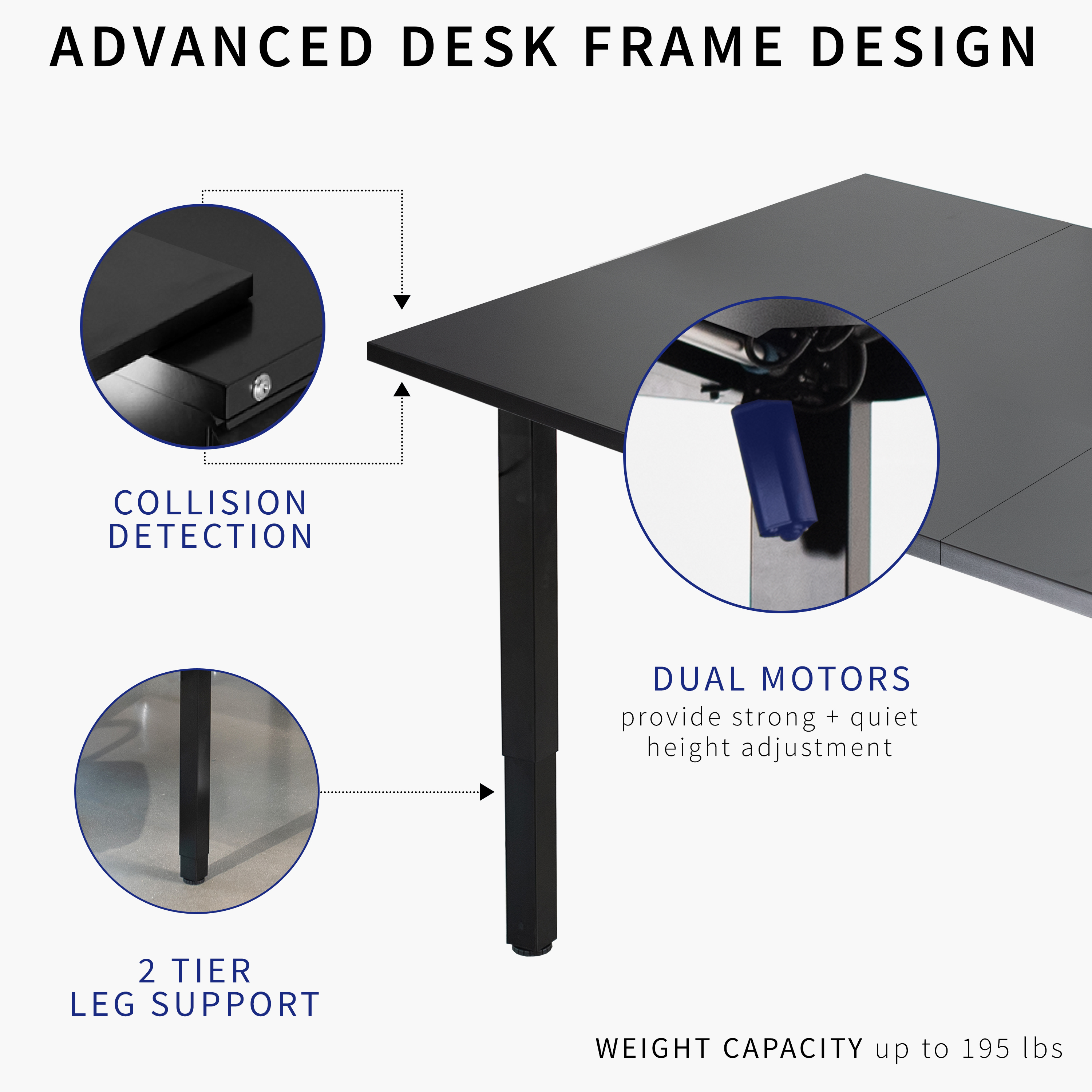 VIVO Electric 118” x 55” Square Corner Desk, Black Table Tops, Black Frame