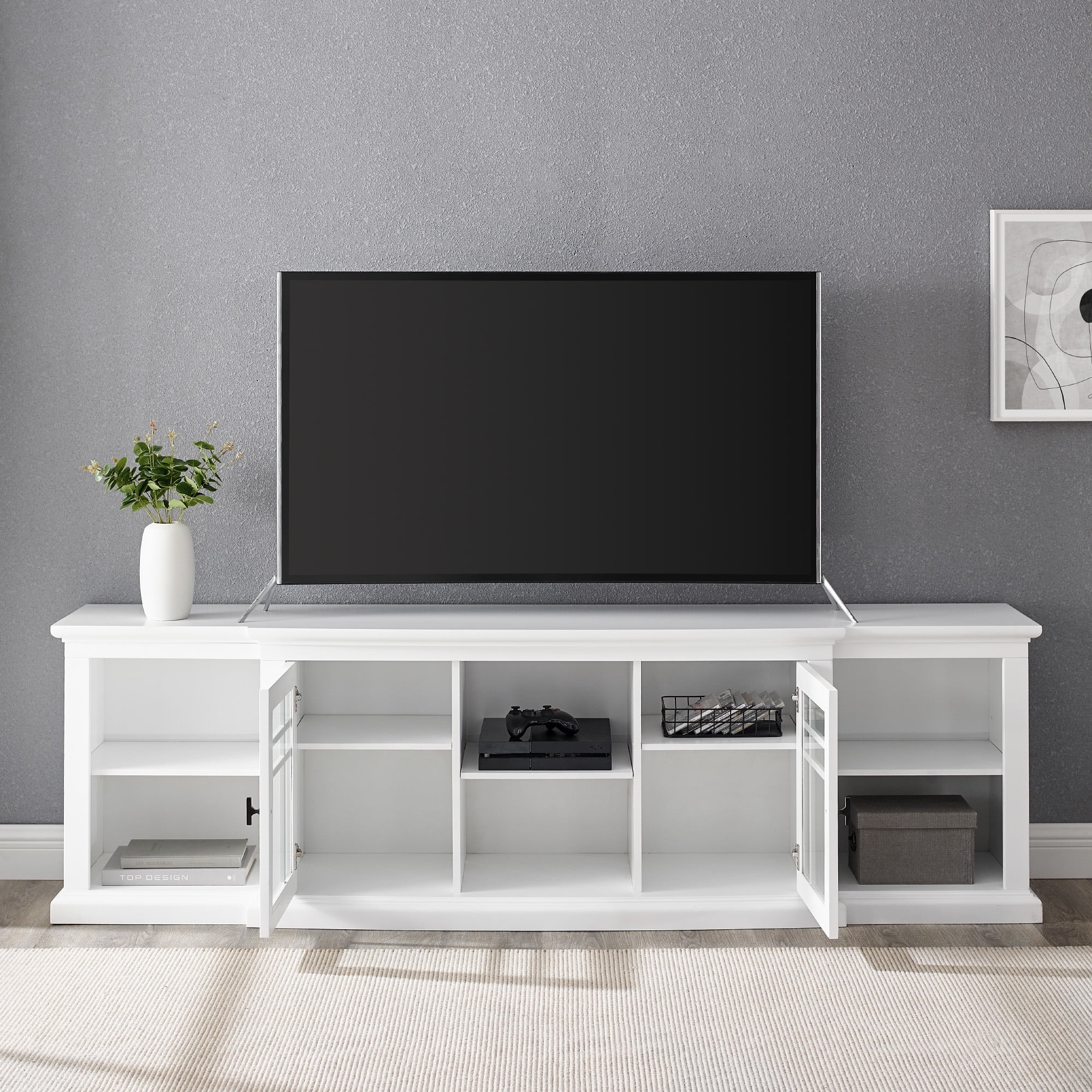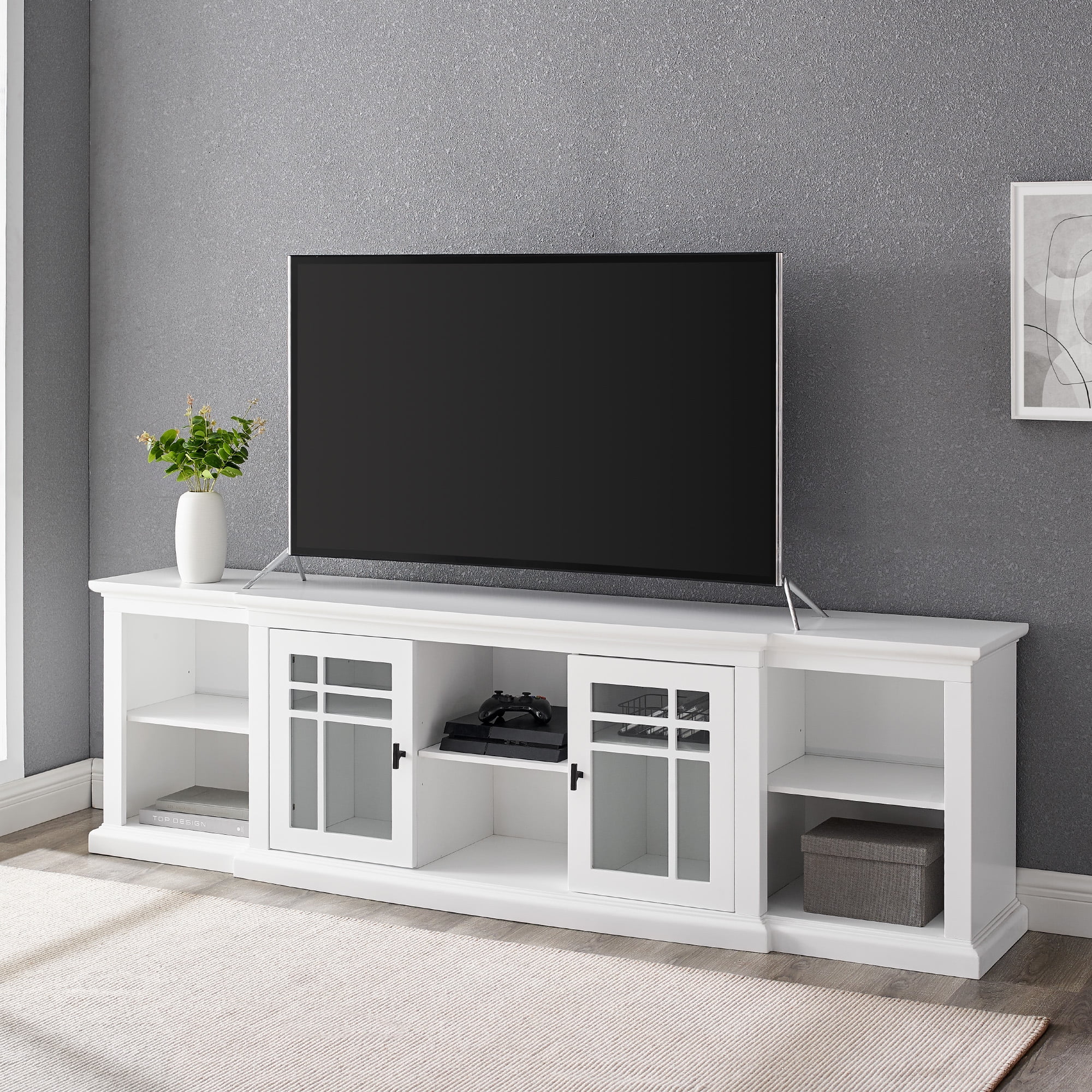 Walker Edison Transitional Glass-Door TV Stand for TVs up to 88”, White