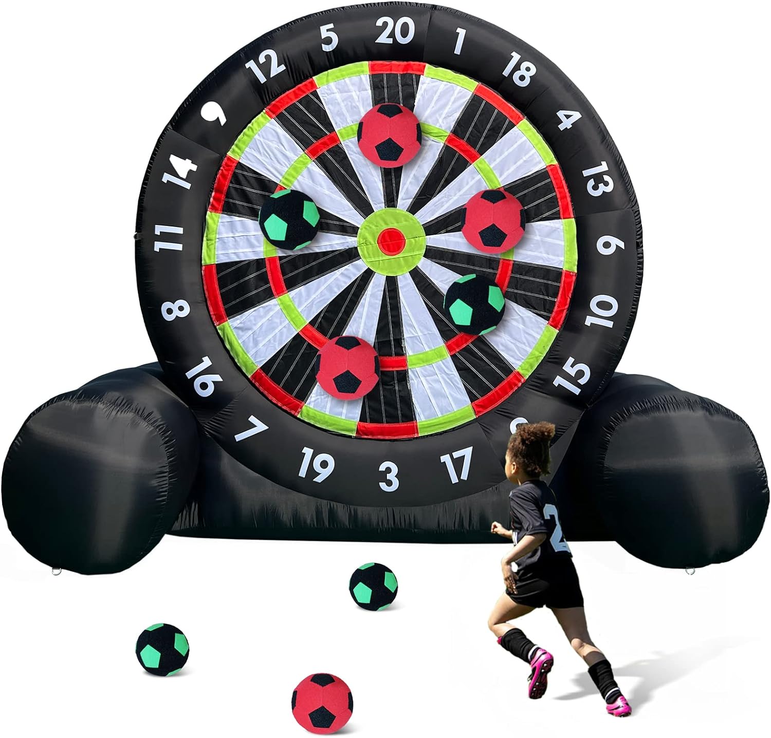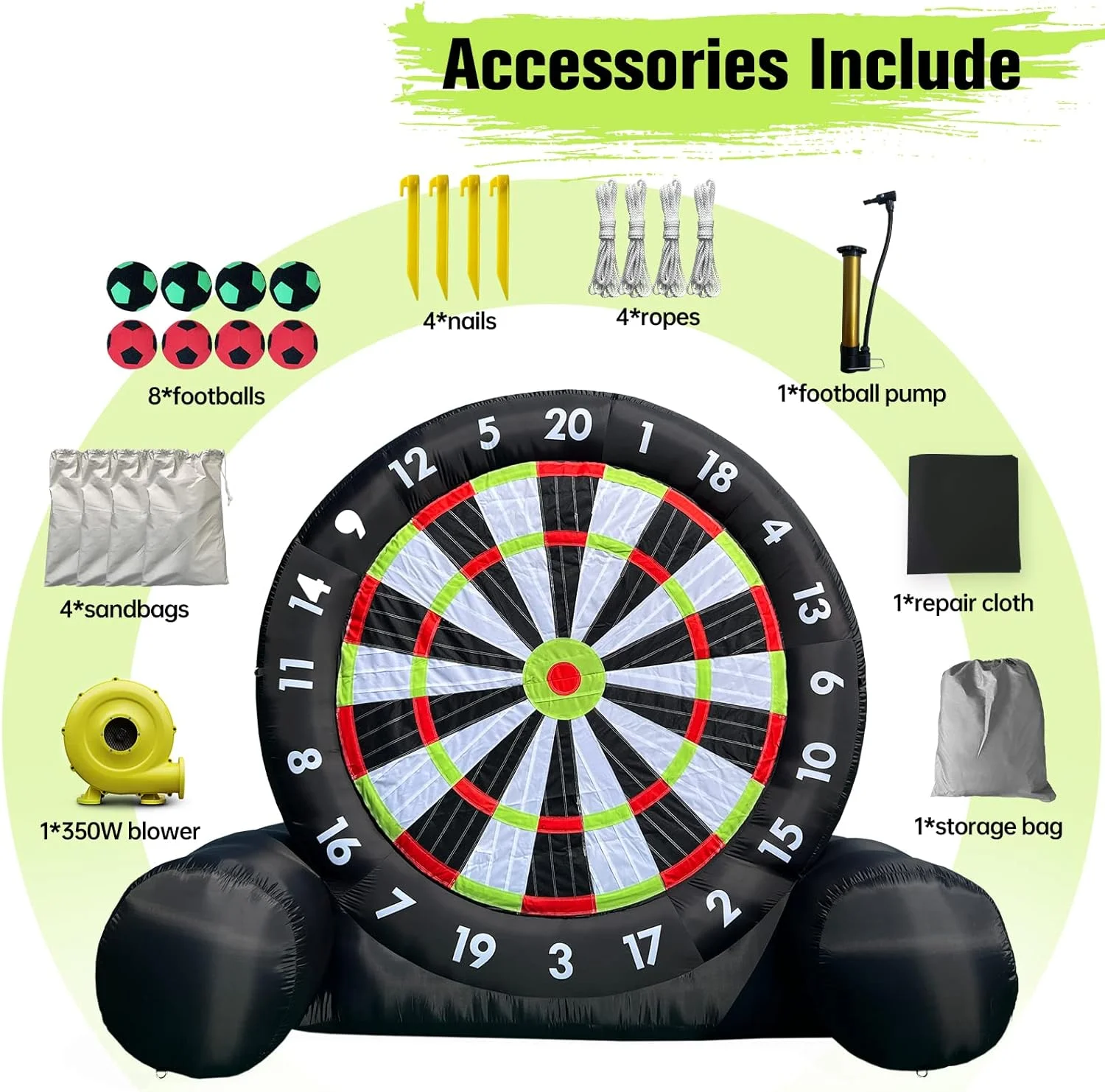 OZIS 10Ft Tall Giant Inflatable Soccer Ball Darts Board with 8pcs Soccer Ball & 350W Blower